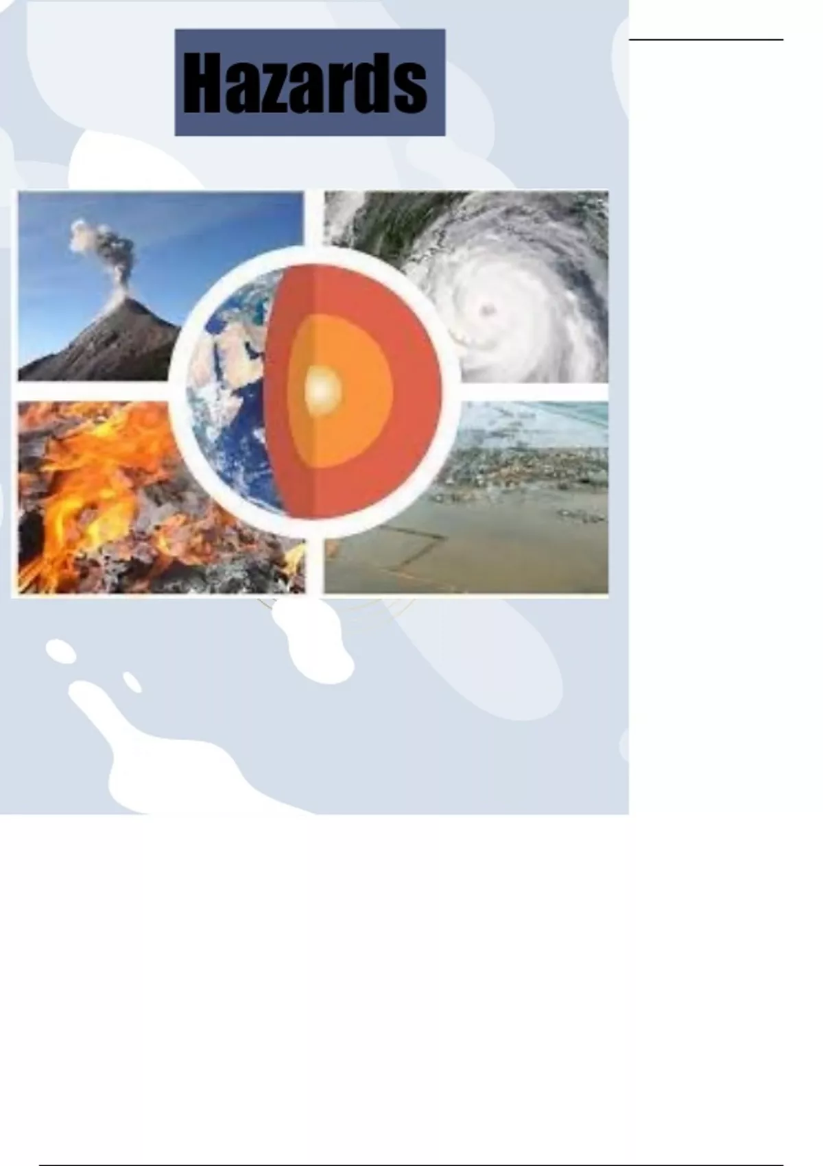• Types of natural hazards include volcanic activity, earthquakes, and