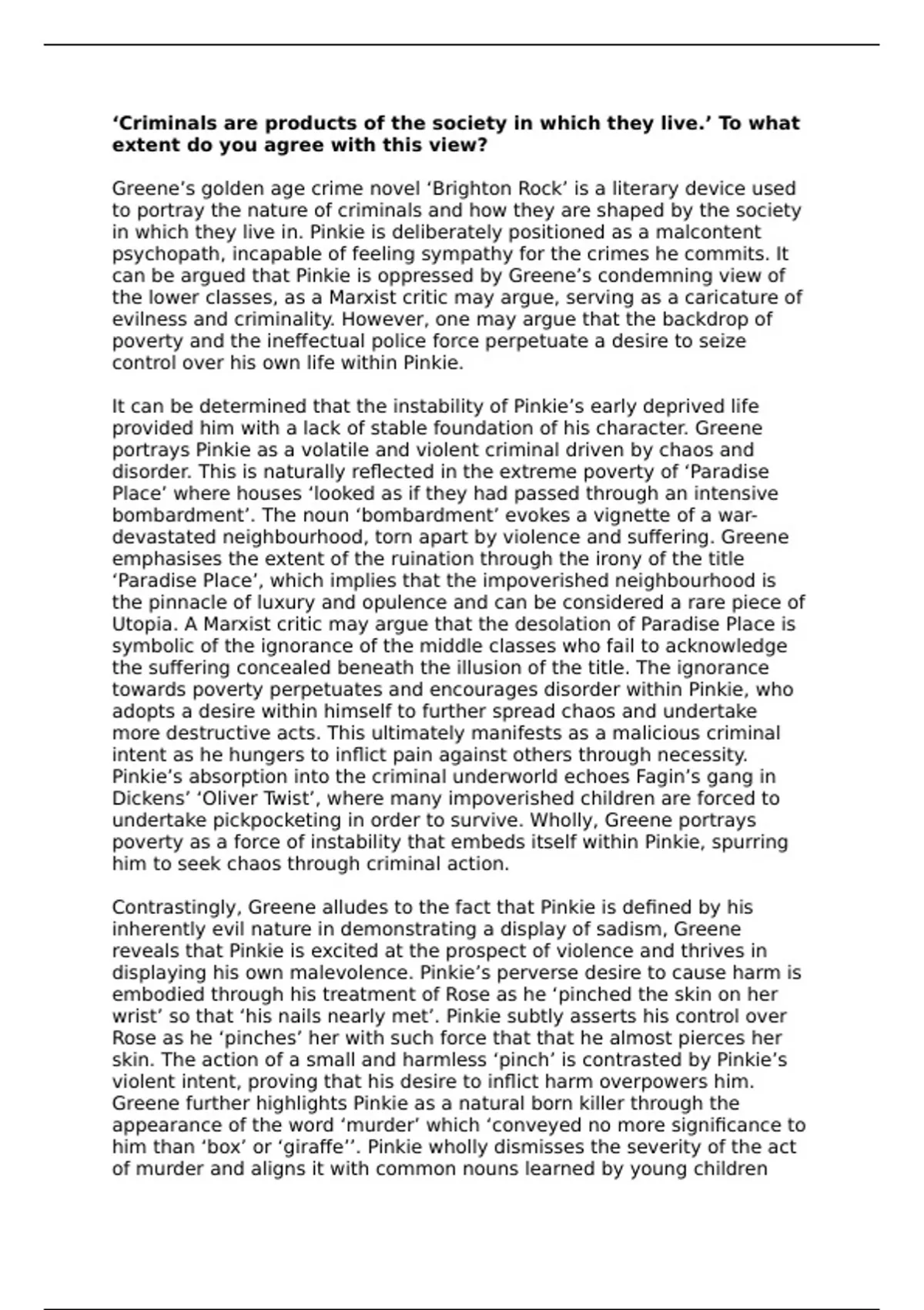 Greene further highlights Pinkie as a natural born killer through the