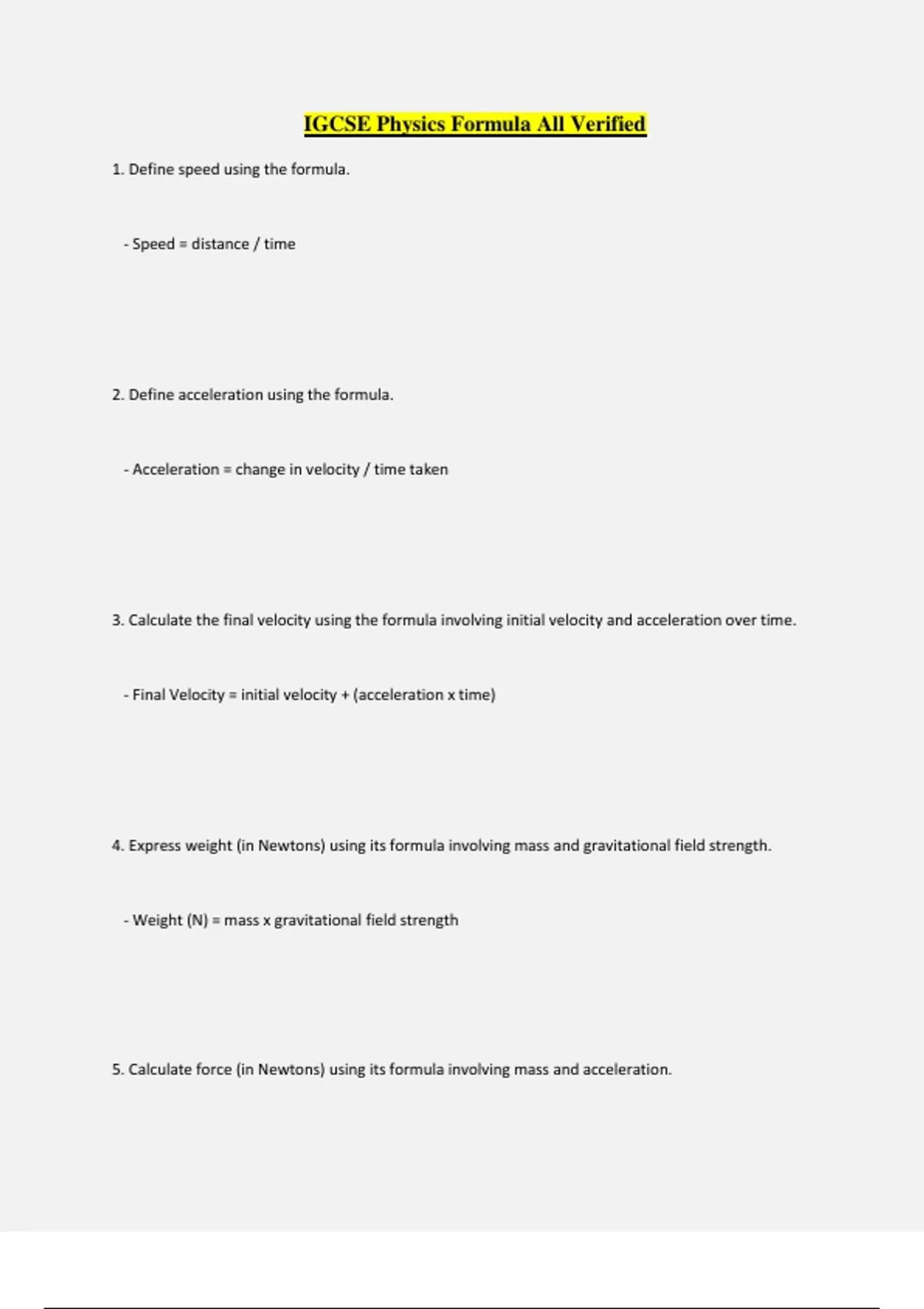 4. Express weight (in Newtons) using its formula involving mass and gravitational field strength.
