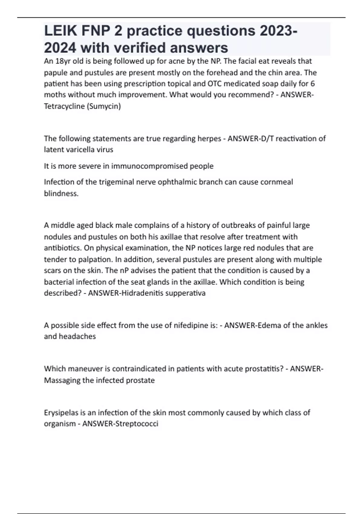 LEIK FNP Practice Questions With 642 Questions And Correct Answers Graded A+LEIK FNP Practice Questions With 642 Questions And Correct Answers Graded A+LEIK FNP Practice Questions With 642 Questions And Correct Answers Graded A+LEIK FNP Practice Questions With 642 Questions And Correct Answers Graded A+LEIK FNP Practice Questions With 642 Questions And Correct Answers Graded A+