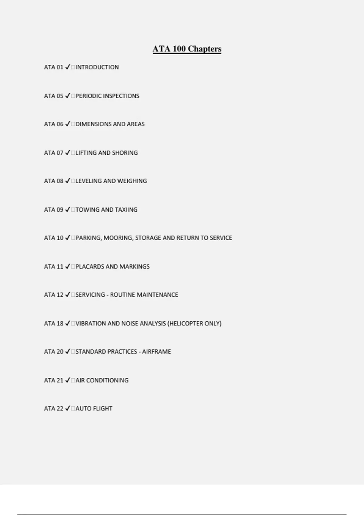 ATA 10 ✔️PARKING, MOORING, STORAGE AND RETURN TO SERVICE