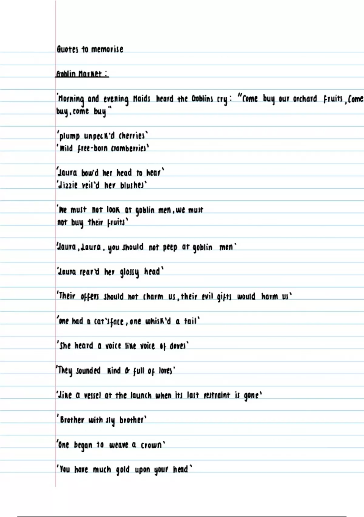 This document provides you with a list of the key quotes from each rossetti poem in the anthology for you to memorise prior to your a level exam.