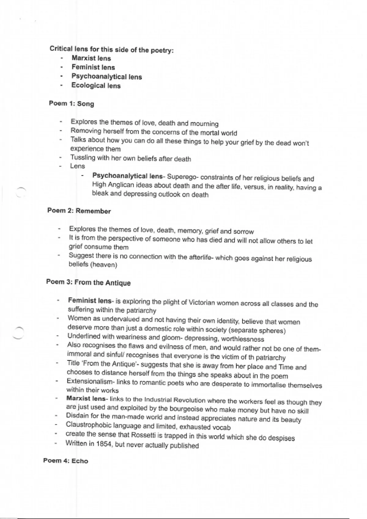 This document goes through each rossetti poem and highlights and explains how different critical lens could be applied to each one. This is key for your english a level exam and makes up a good proportion of the marks.