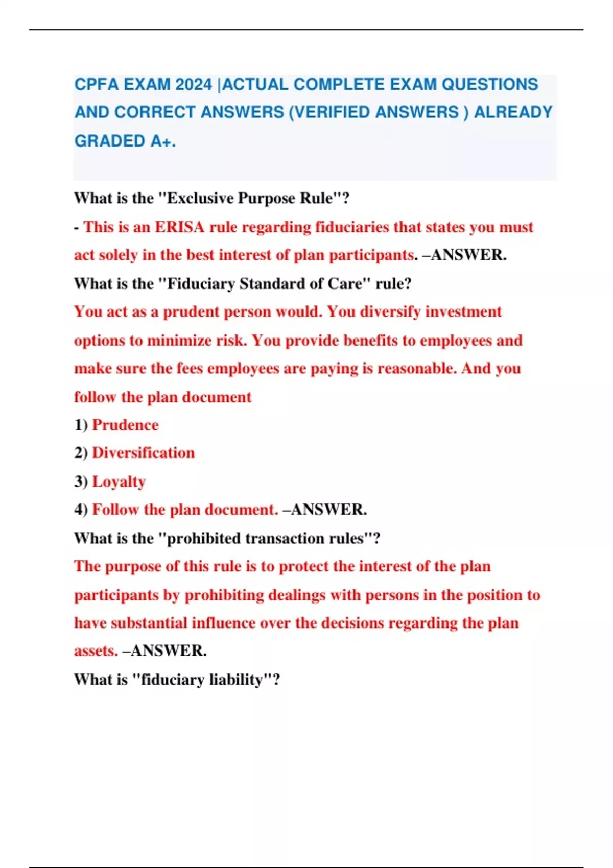 CPFA EXAM 2024 |ACTUAL COMPLETE EXAM QUESTIONS AND CORRECT ANSWERS (VERIFIED ANSWERS ) ALREADY GRADED A+. CPFA EXAM 2024 |ACTUAL COMPLETE EXAM QUESTIONS AND CORRECT ANSWERS (VERIFIED ANSWERS ) ALREADY GRADED A+. CPFA EXAM 2024 |ACTUAL COMPLETE EXAM QUESTIONS AND CORRECT ANSWERS (VERIFIED ANSWERS ) ALREADY GRADED A+. CPFA EXAM 2024 |ACTUAL COMPLETE EXAM QUESTIONS AND CORRECT ANSWERS (VERIFIED ANSWERS ) ALREADY GRADED A+. CPFA EXAM 2024 |ACTUAL COMPLETE EXAM QUESTIONS AND CORRECT ANSWERS (VERIFIED ANSWERS ) ALREADY GRADED A+. CPFA EXAM 2024 |ACTUAL COMPLETE EXAM QUESTIONS AND CORRECT ANSWERS (VERIFIED ANSWERS ) ALREADY GRADED A+. CPFA EXAM 2024 |ACTUAL COMPLETE EXAM QUESTIONS AND CORRECT ANSWERS (VERIFIED ANSWERS ) ALREADY GRADED A+.