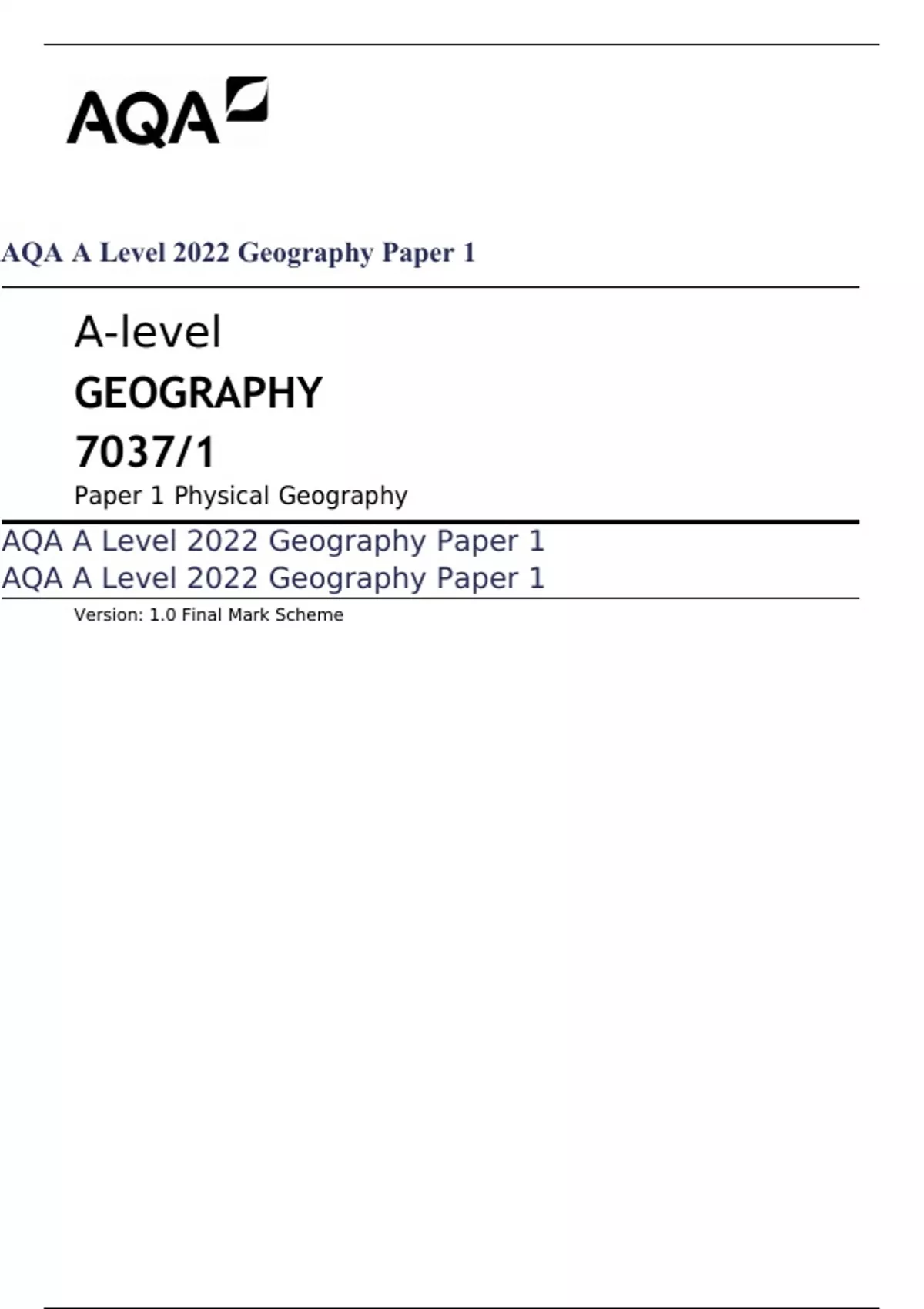 AQA A Level 2022 Geography Paper 1. Document information