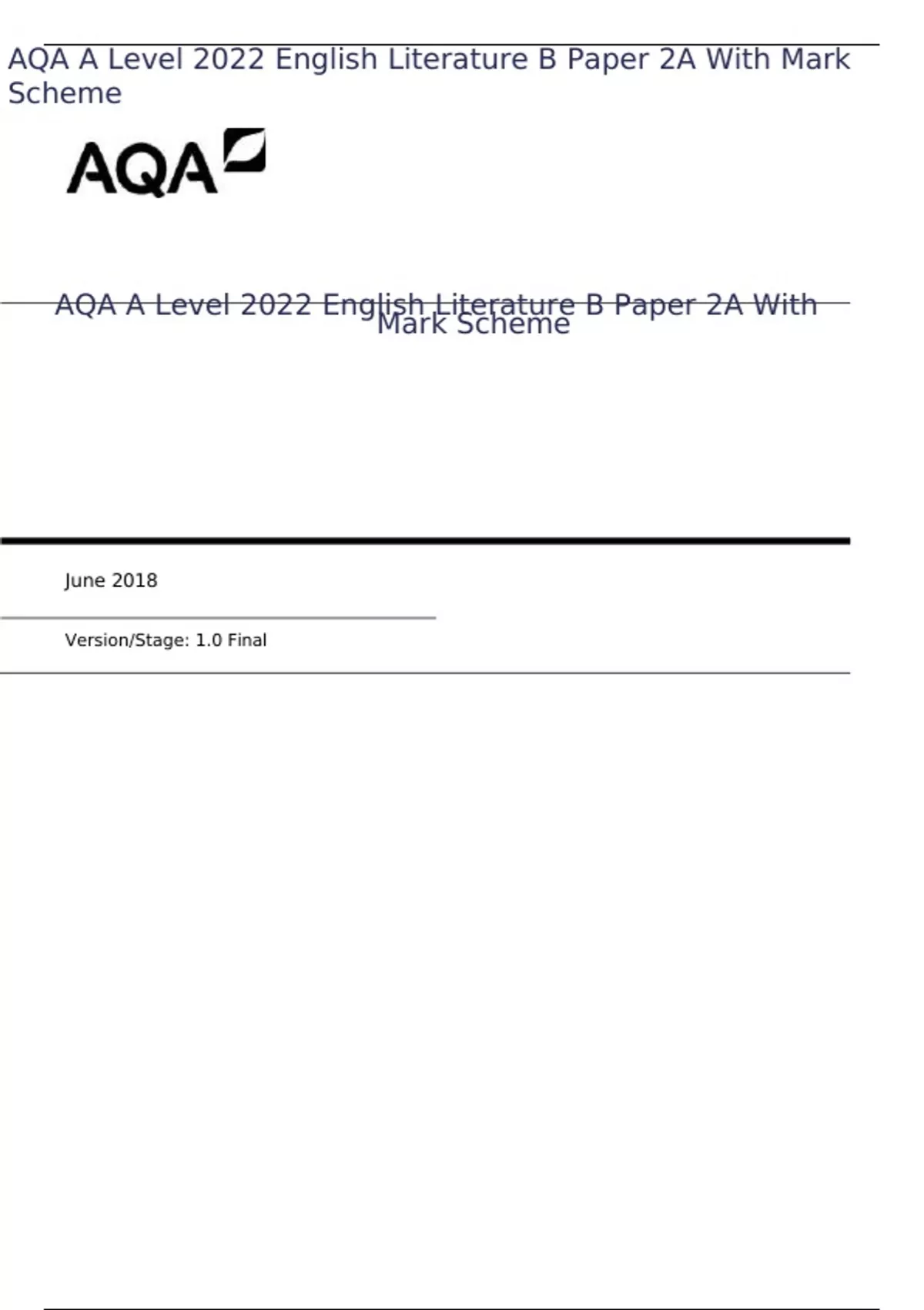 AQA A Level 2022 English Literature B Paper 2A With Mark S