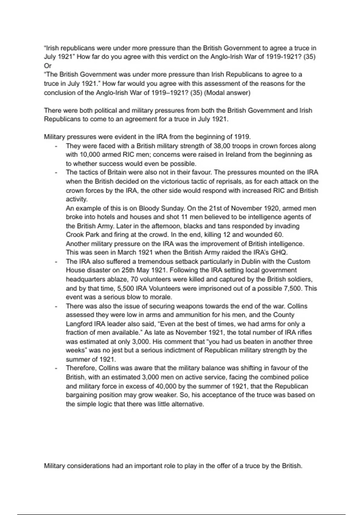 July 1921” How far do you agree with this verdict on the Anglo-Irish War of 1919-1921? (35)