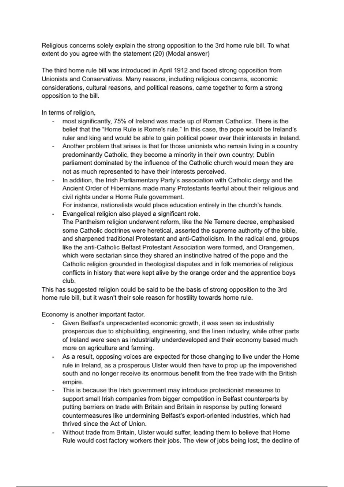 GCE CCEA A2 History Home Rule (Top mark band essay)