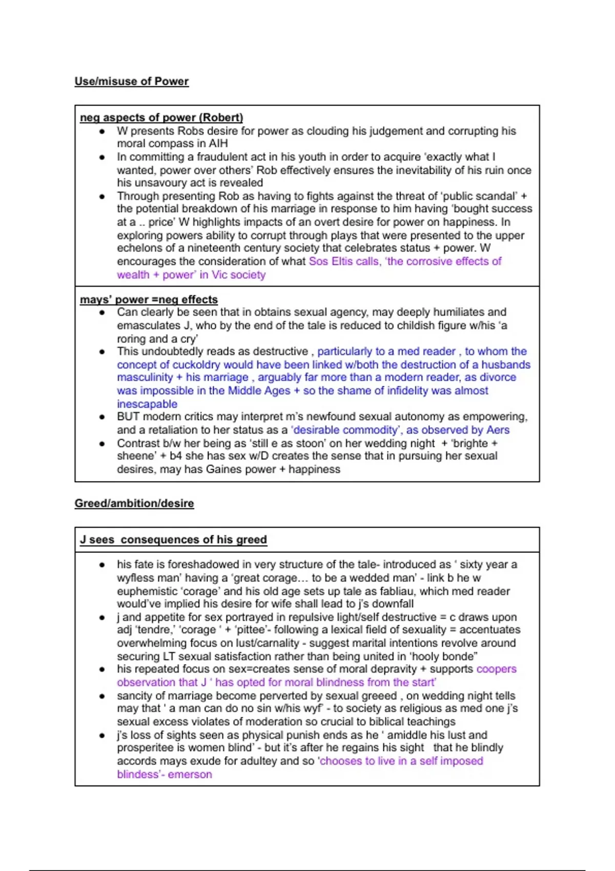 A Level English Lit OCR - The Merchants Tale By Chaucer and An ideal Husband by Wilde Comparison Essay plans
