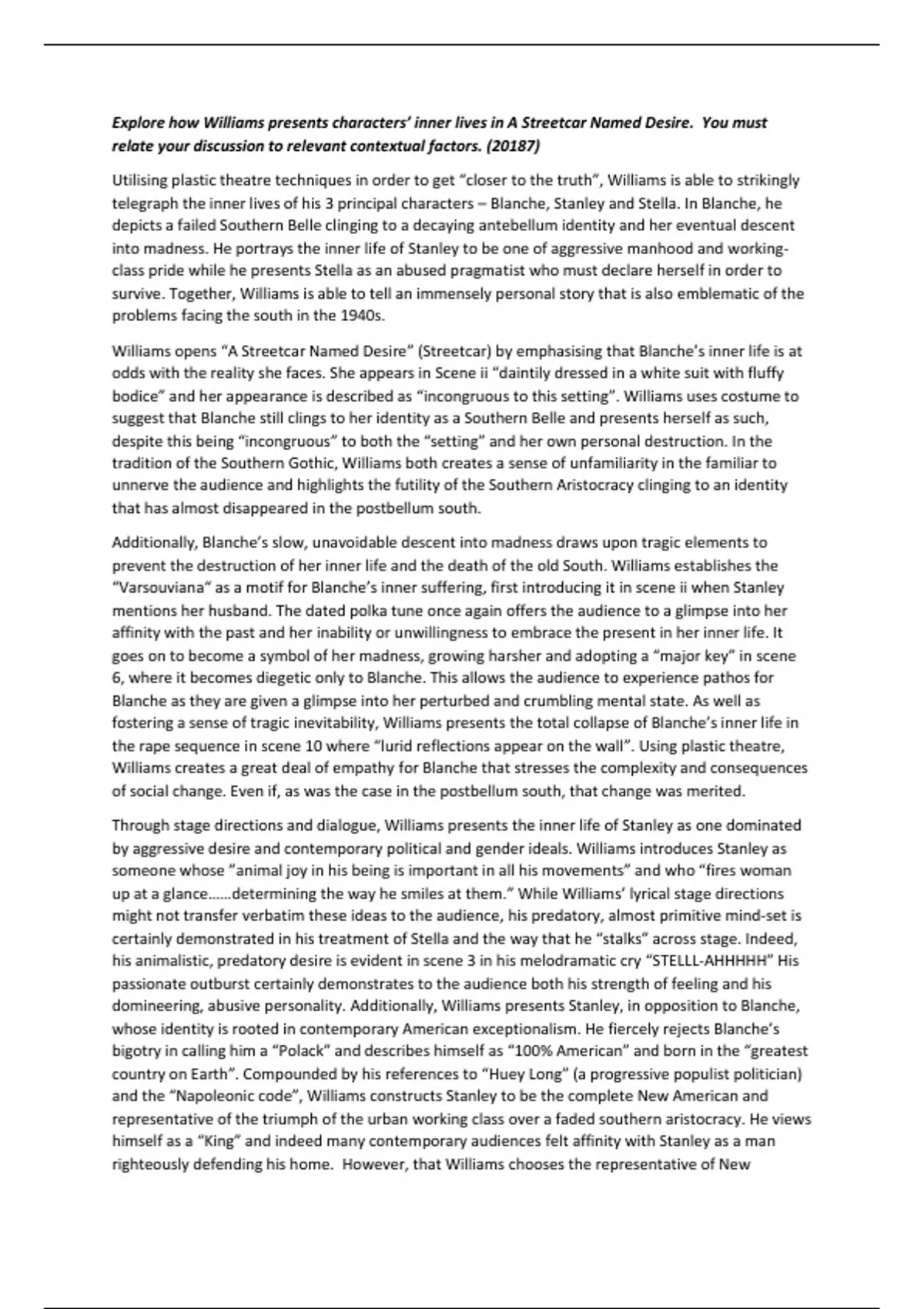 Williams opens “A Streetcar Named Desire” (Streetcar) by emphasising that Blanche’s inner life is at