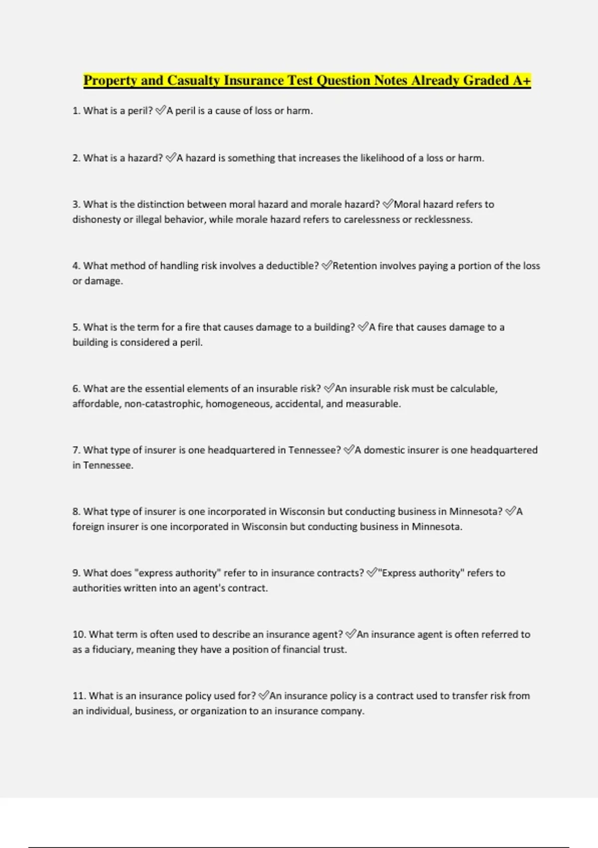 1. What is a peril? ✅A peril is a cause of loss or harm.