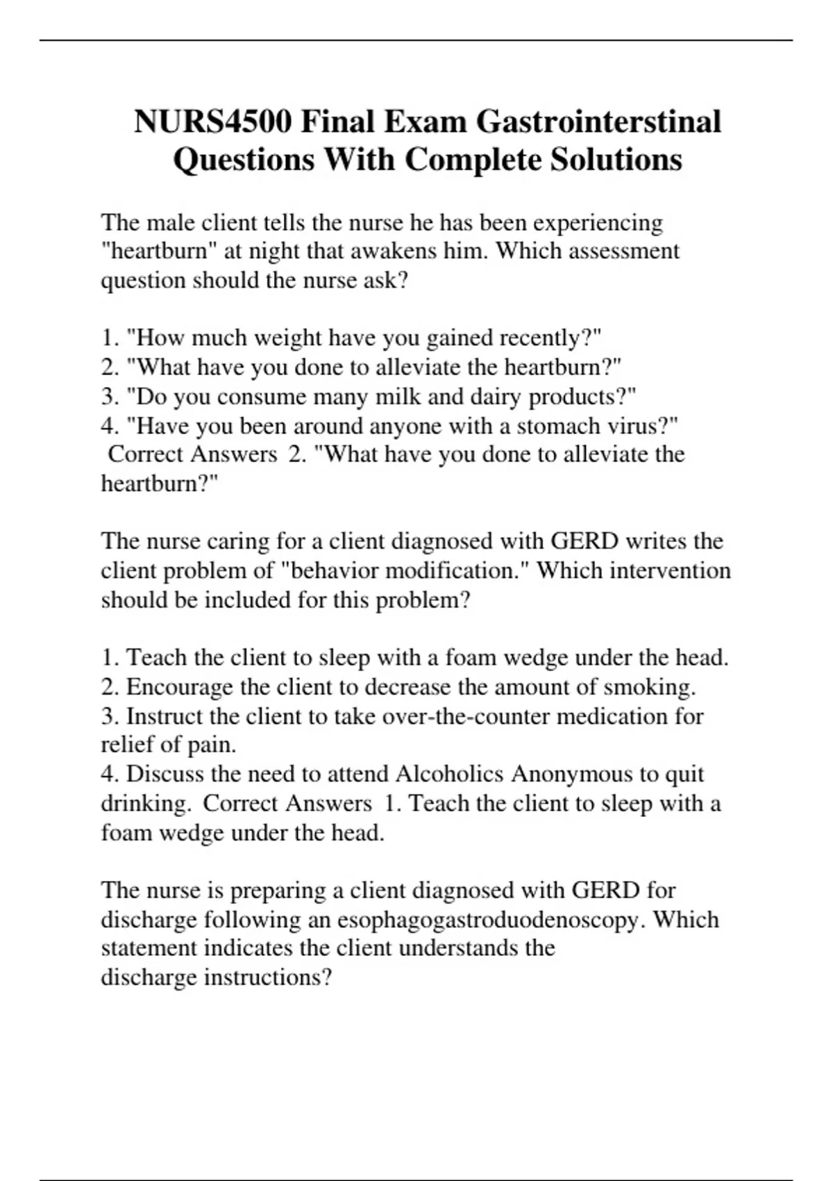NURS4500 Final Exam Gastrointerstinal Questions With Complete Solutions
