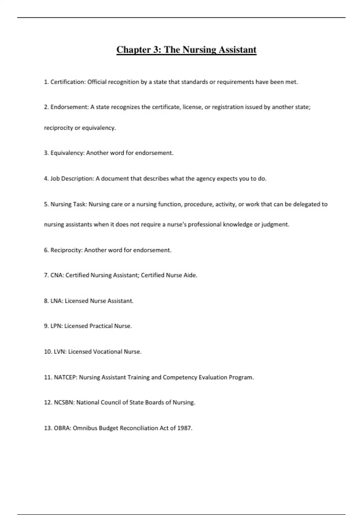 7. CNA: Certified Nursing Assistant; Certified Nurse Aide.