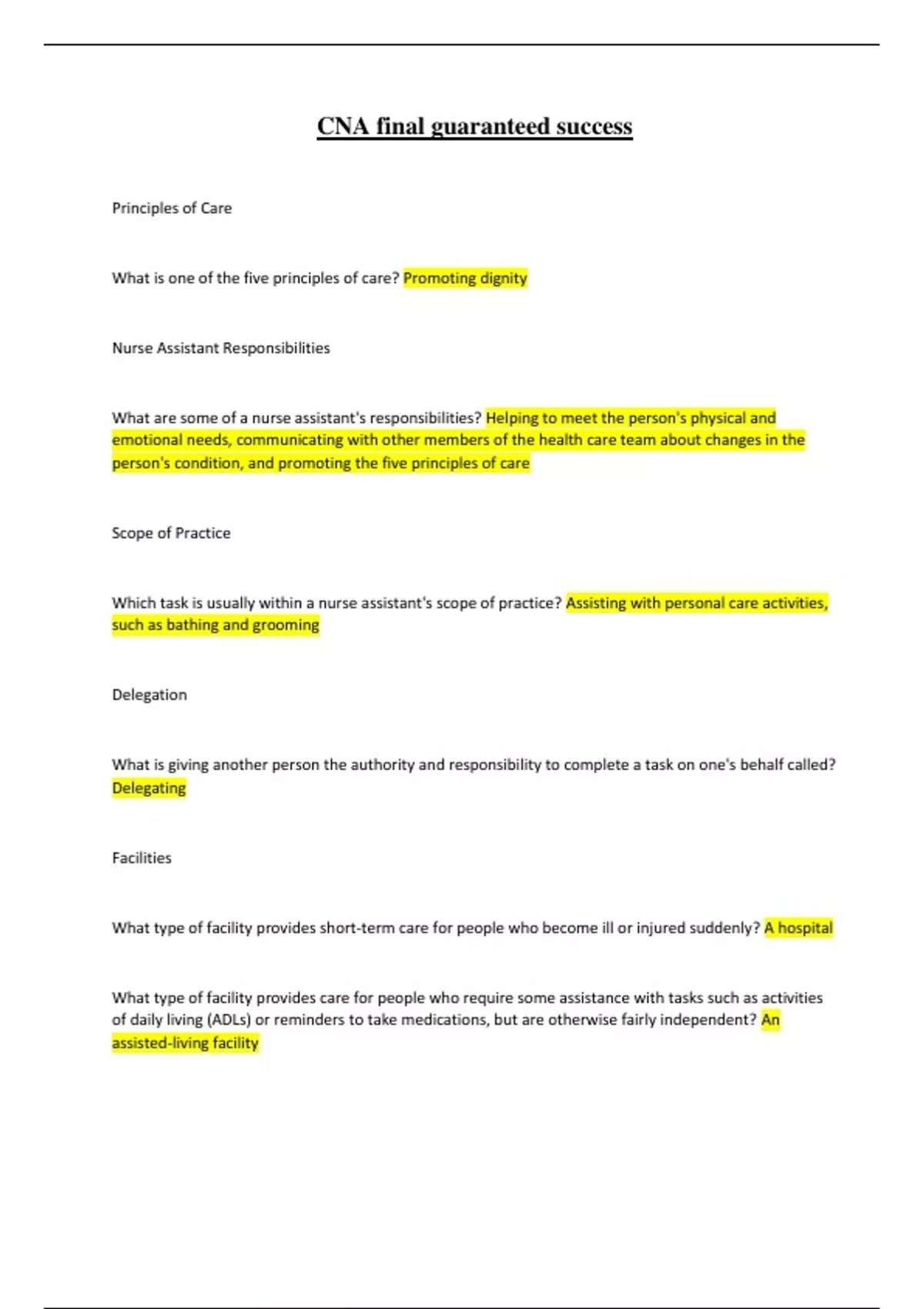 , 17) Which one of the following actions taken by a nurse assistant supports the rights of a person