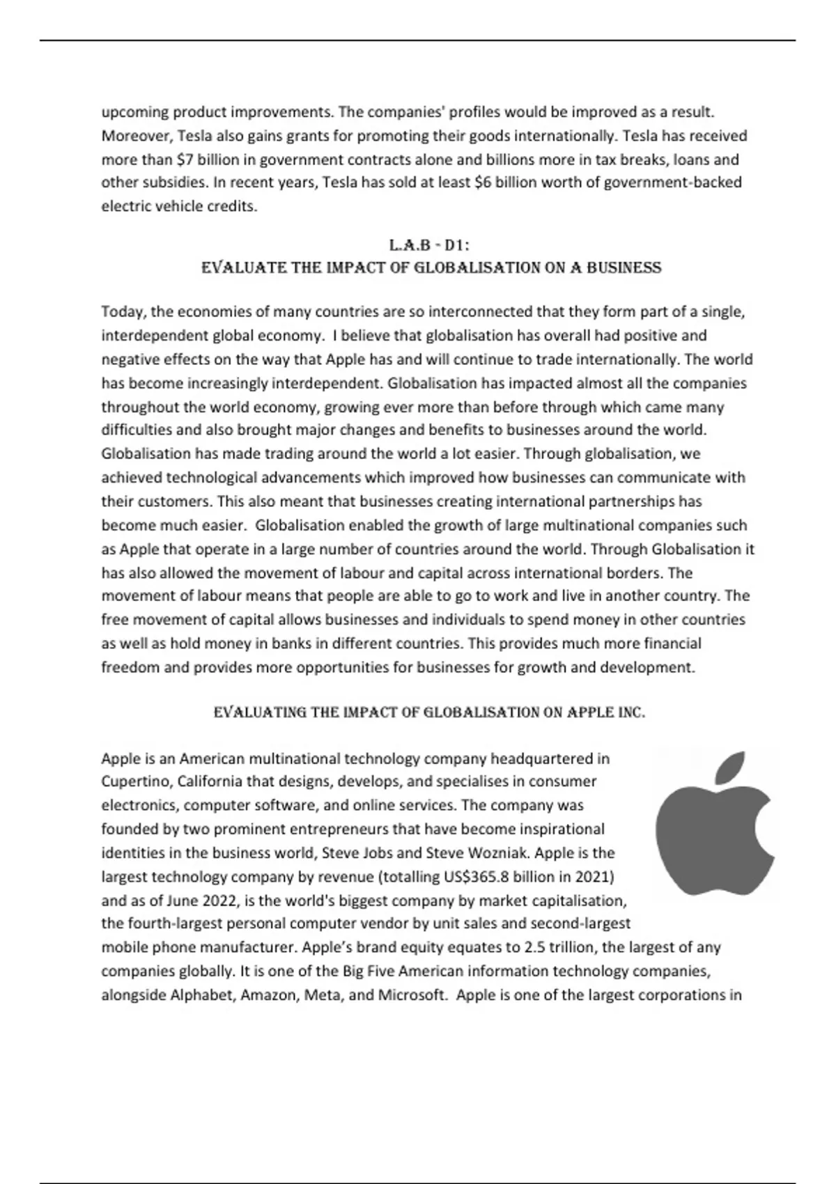 Evaluating the impact of globalisation on Apple Inc.