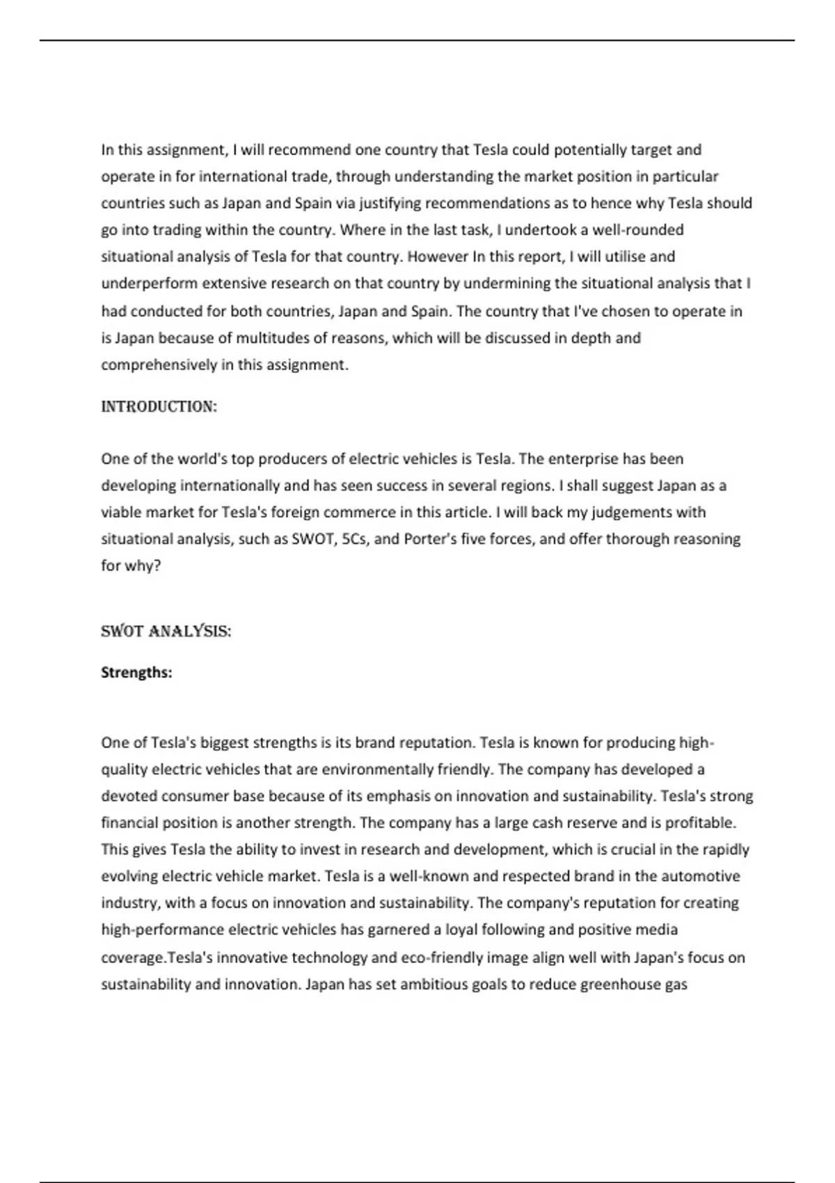 countries such as Japan and Spain via justifying recommendations as to hence why Tesla should