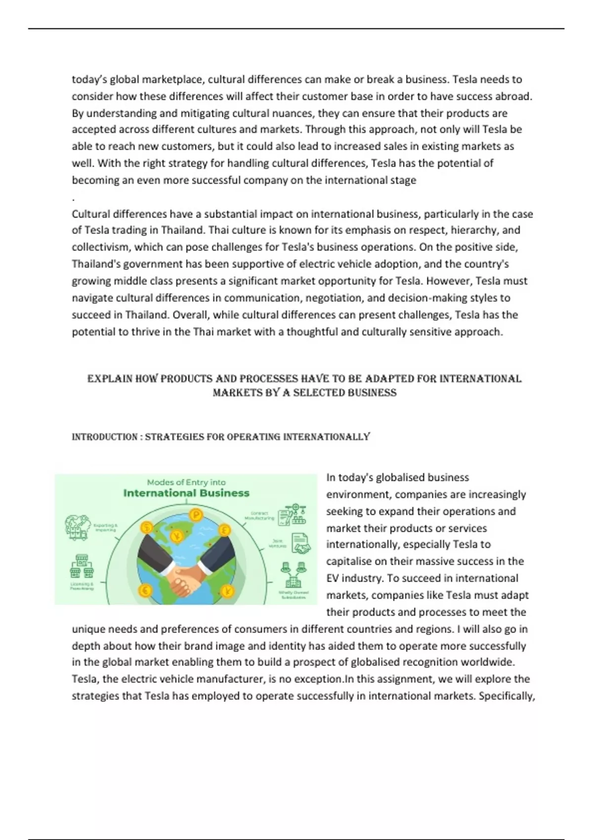assignment, I will be exploring how Tesla adapts its products and processes for international