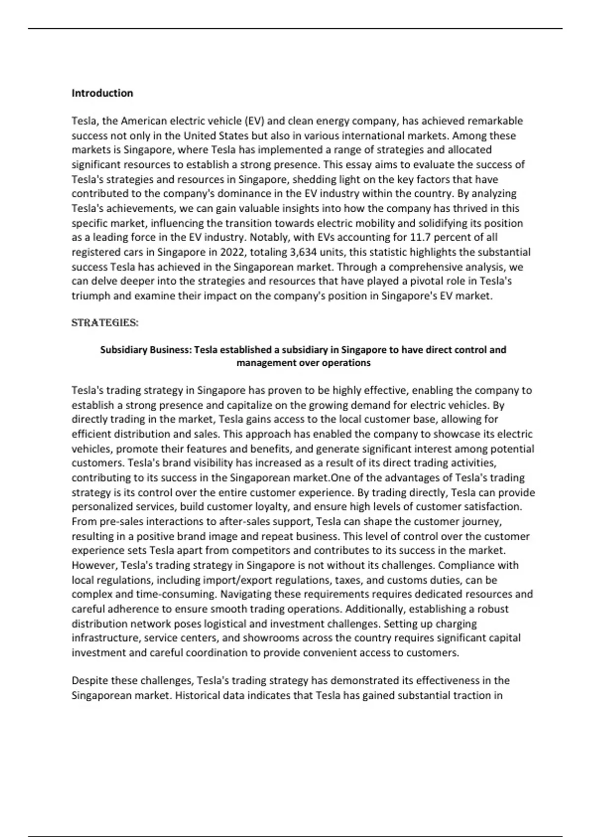 success Tesla has achieved in the Singaporean market. Through a comprehensive analysis, we