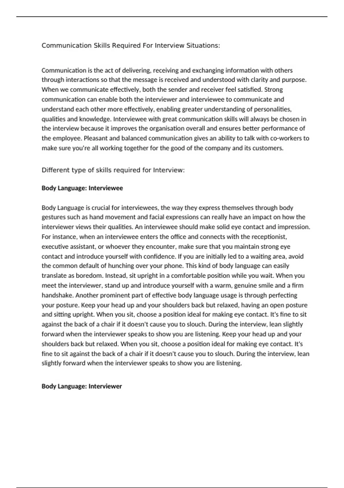 ,An Interviewer also requires exceptional body language skills which could complement the