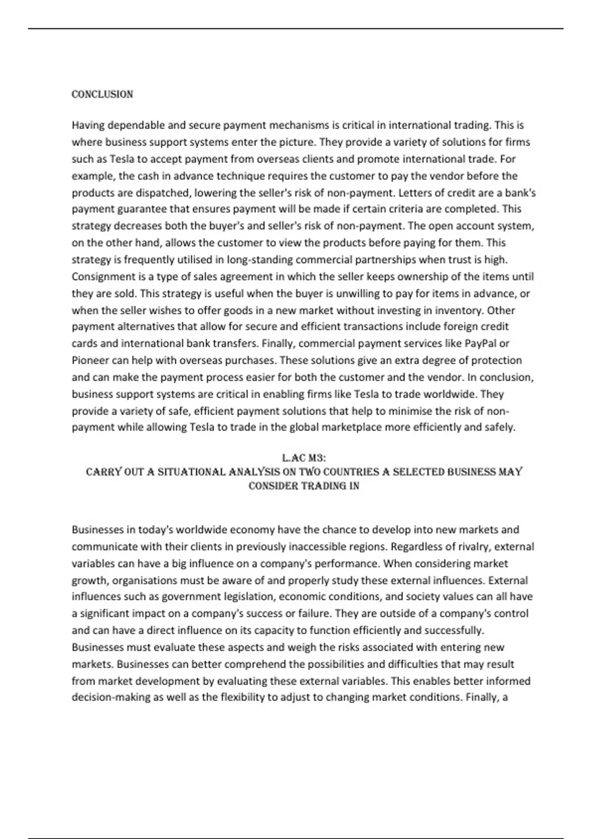 *Certified High Graded Work* Unit 5 International Business: M3 - Carry out a situational analysis on two countries a selected business may consider trading in. btec business level 3 national diploma