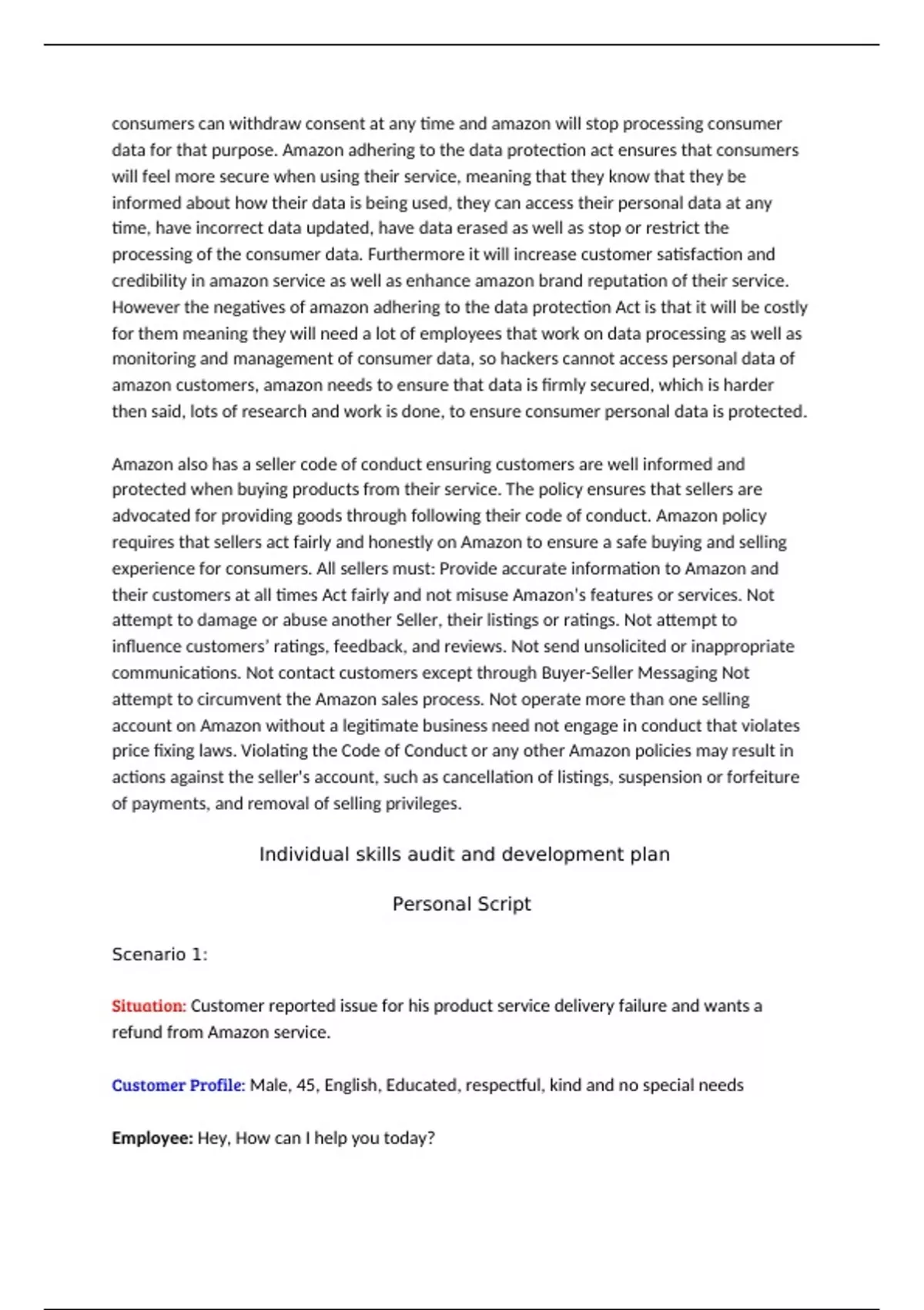 advocated for providing goods through following their code of conduct. Amazon policy