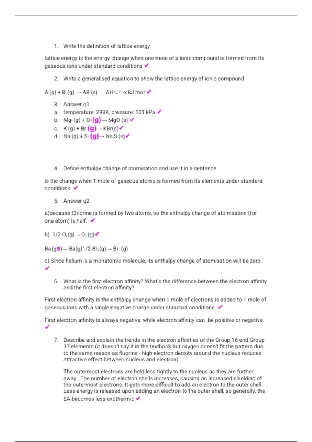 this document covers chapter 19 of the Chemistry CIE book of lattice energy. It is a summary of the different subtopics, including the questions that are answered and corrected by a teacher. all the answers were written based on the book and the exams marking schemes