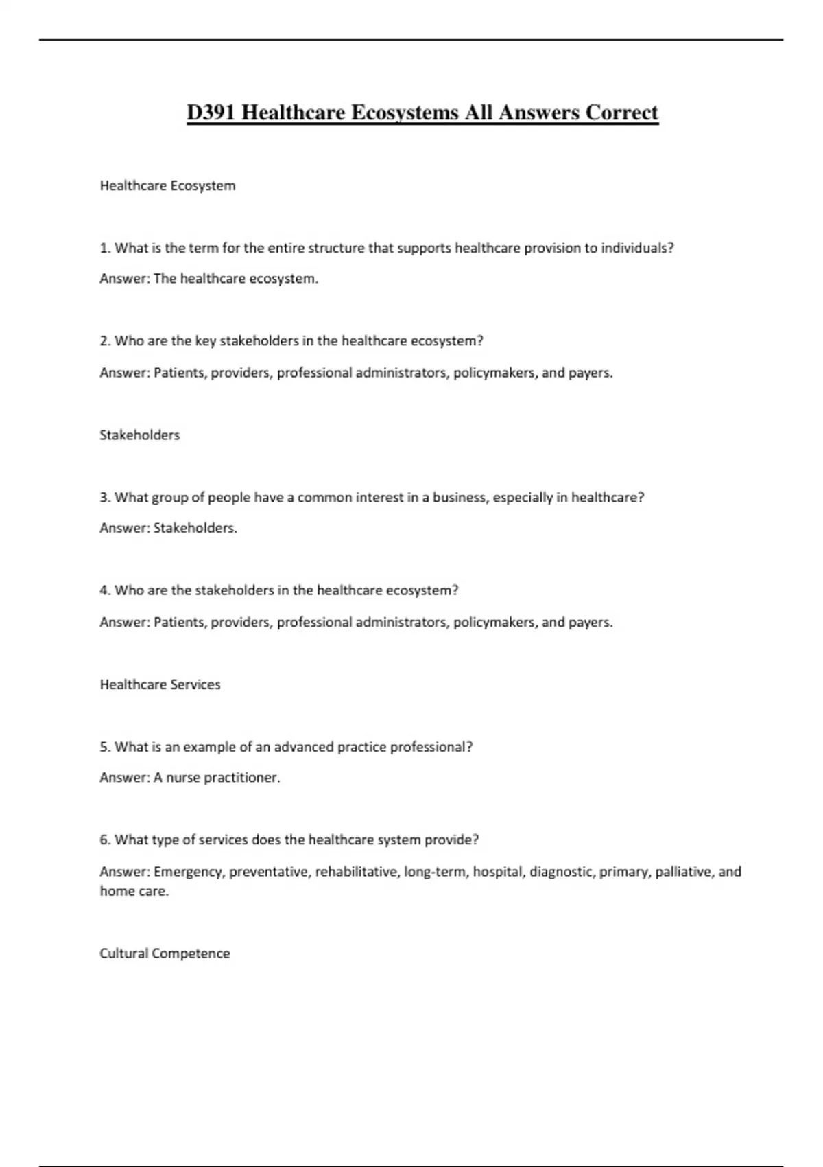 ,7. Why is cultural competence important in healthcare services?