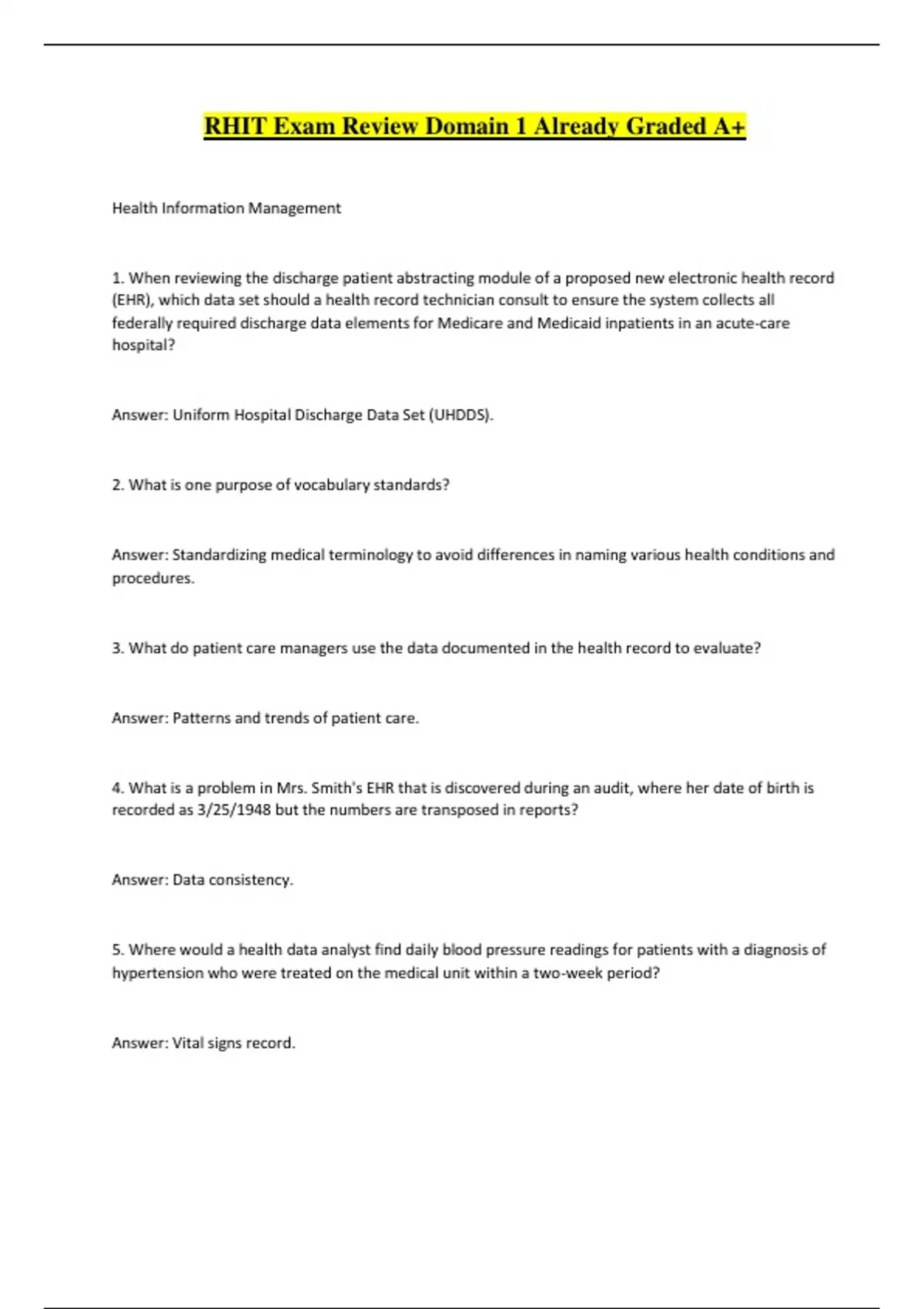 Answer: Uniform Hospital Discharge Data Set (UHDDS).