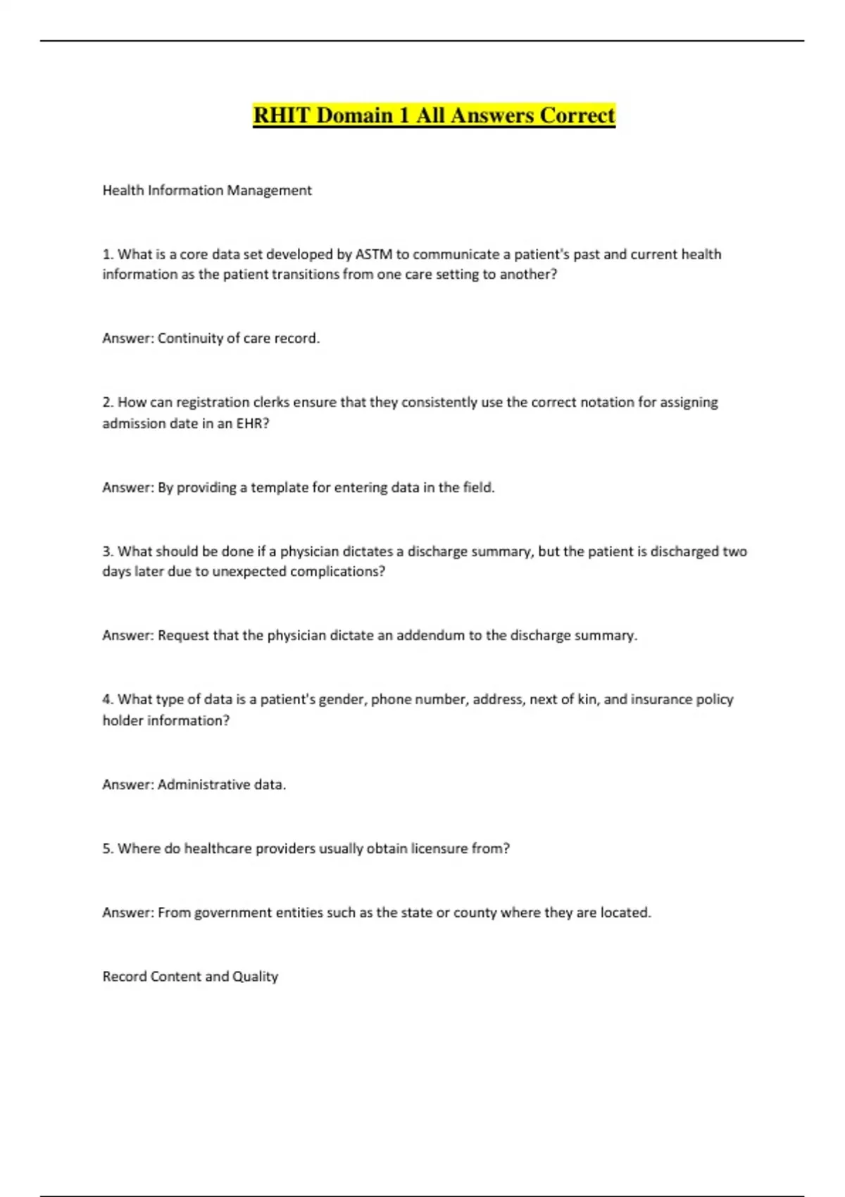 Record Content and Quality
