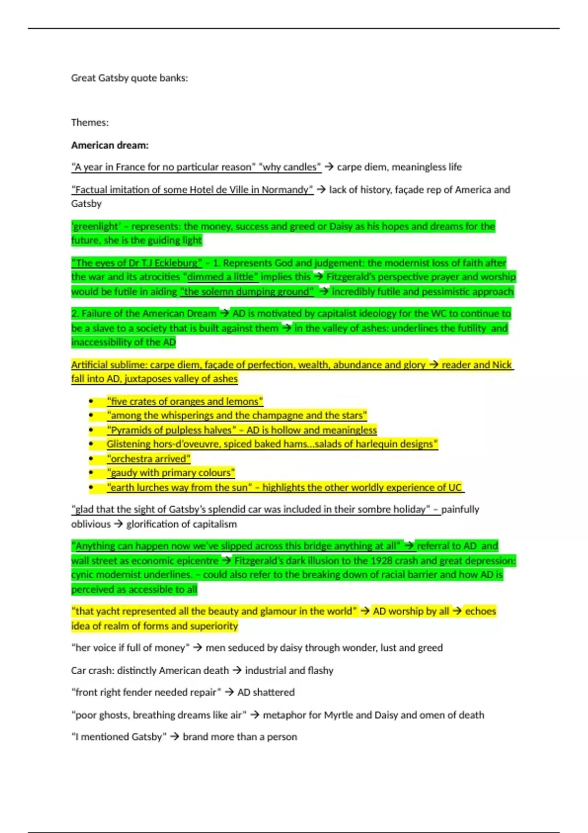 ‘greenlight’ – represents: the money, success and greed or Daisy as his hopes and dreams for the