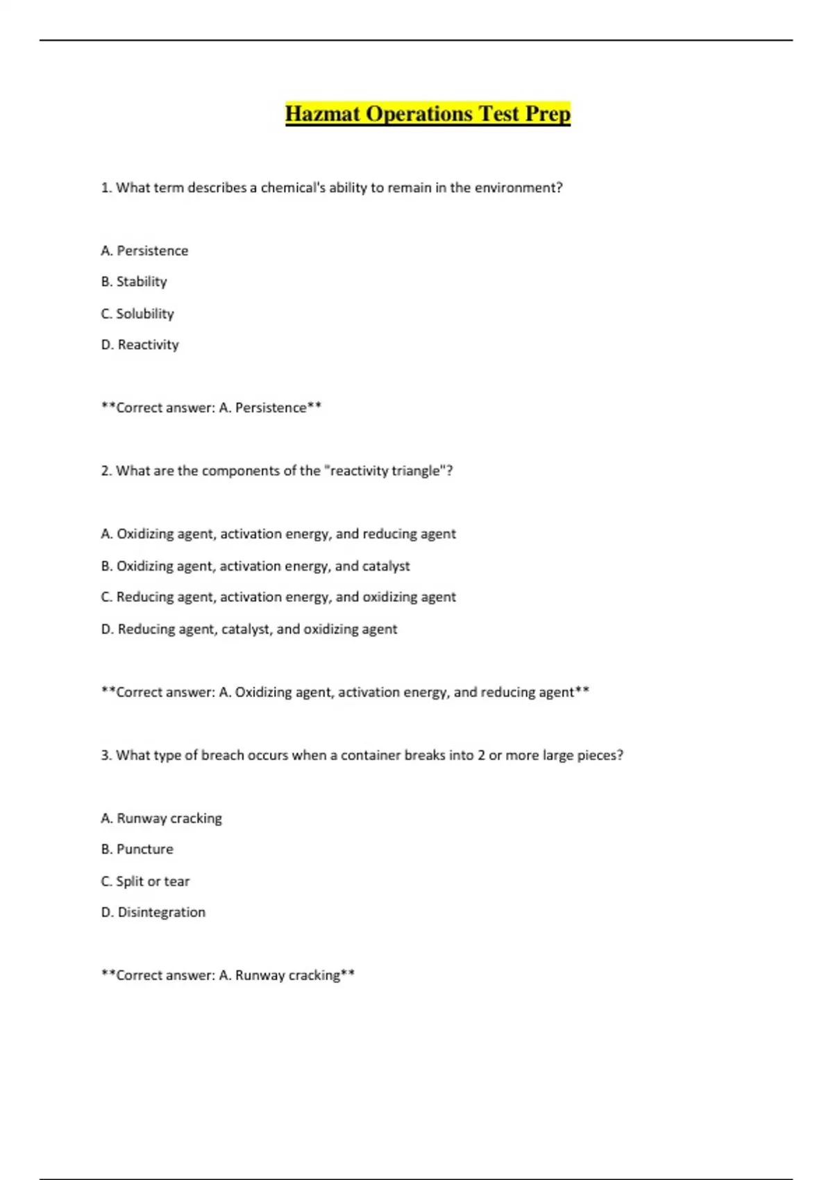 1. What term describes a chemical's ability to remain in the environment?