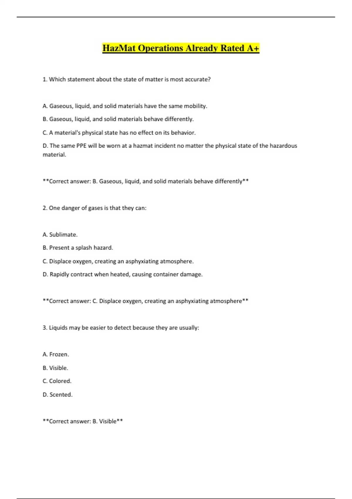 D. The same PPE will be worn at a hazmat incident no matter the physical state of the hazardous