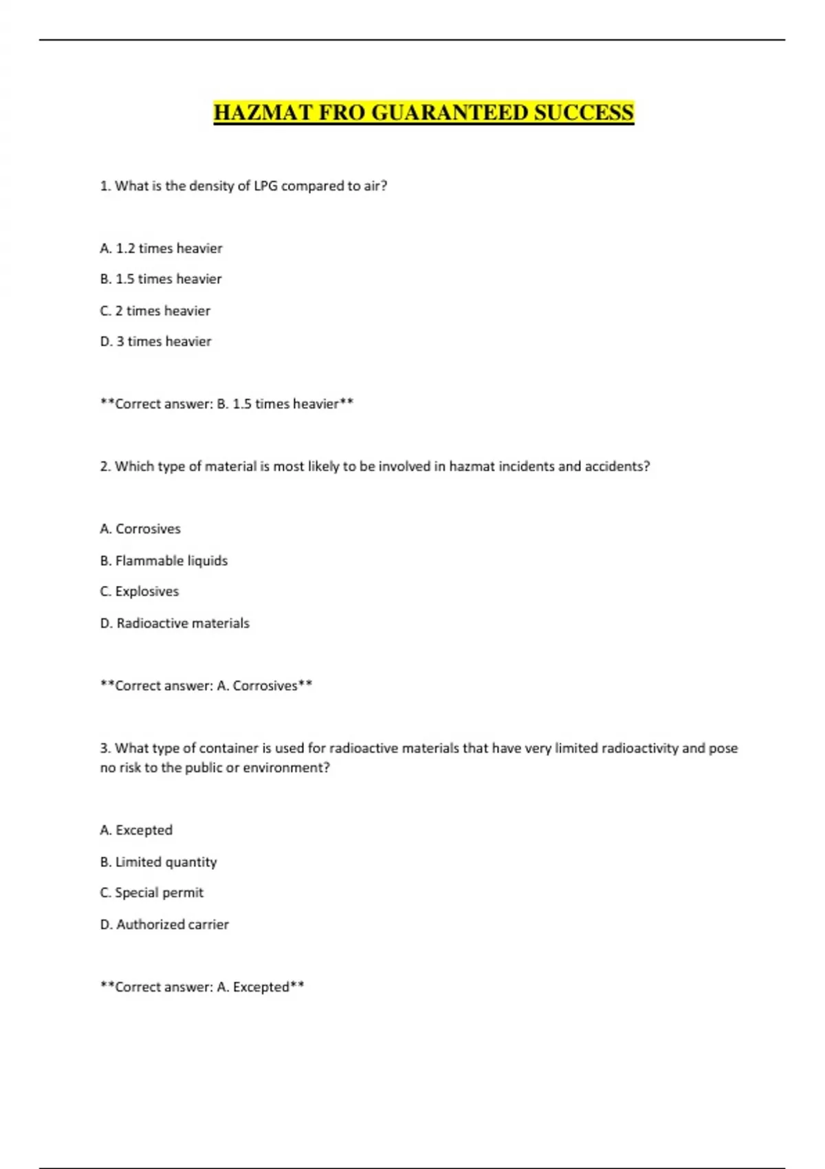 **Correct answer: A. Corrosives**