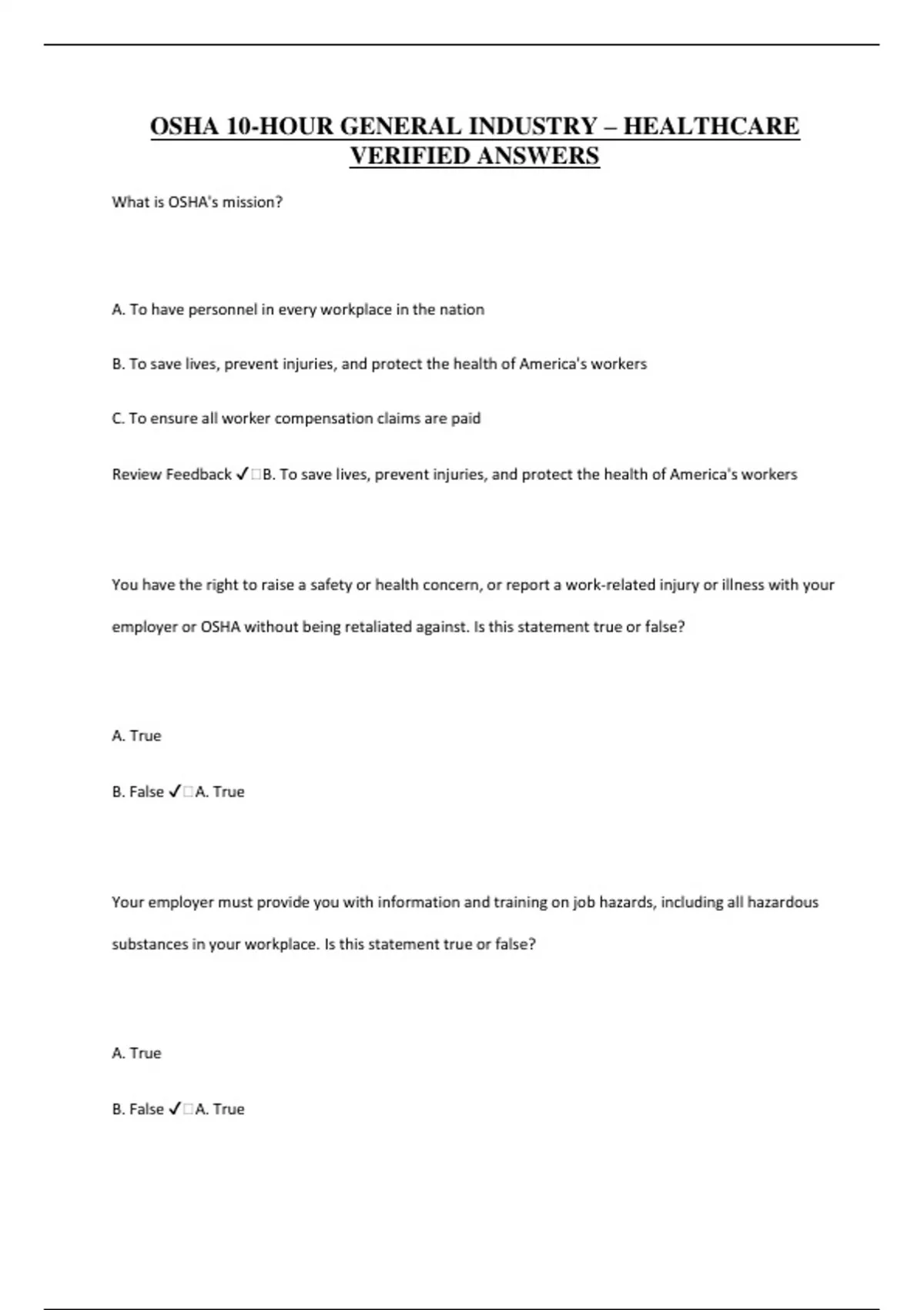 Review Feedback ✔️B. To save lives, prevent injuries, and protect the health of America's workers