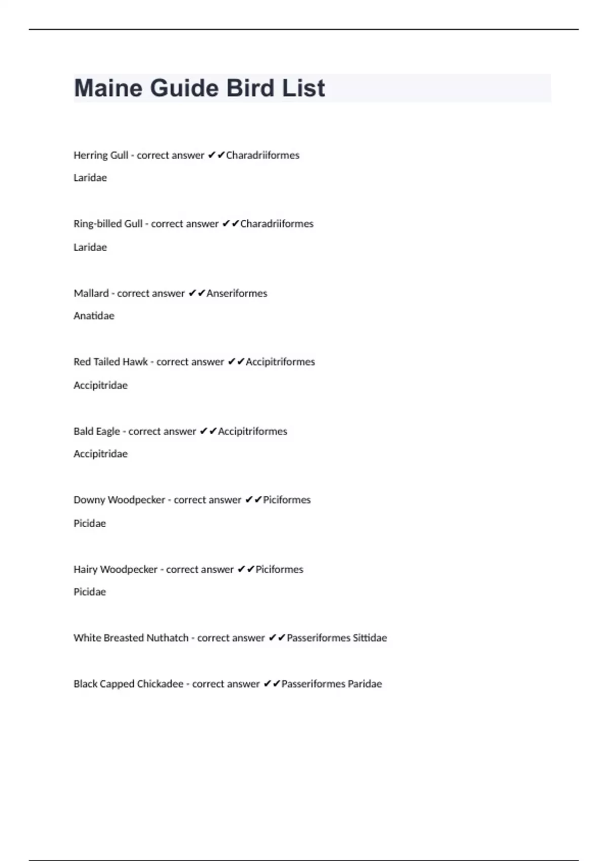Ring-billed Gull - correct answer ✔✔Charadriiformes