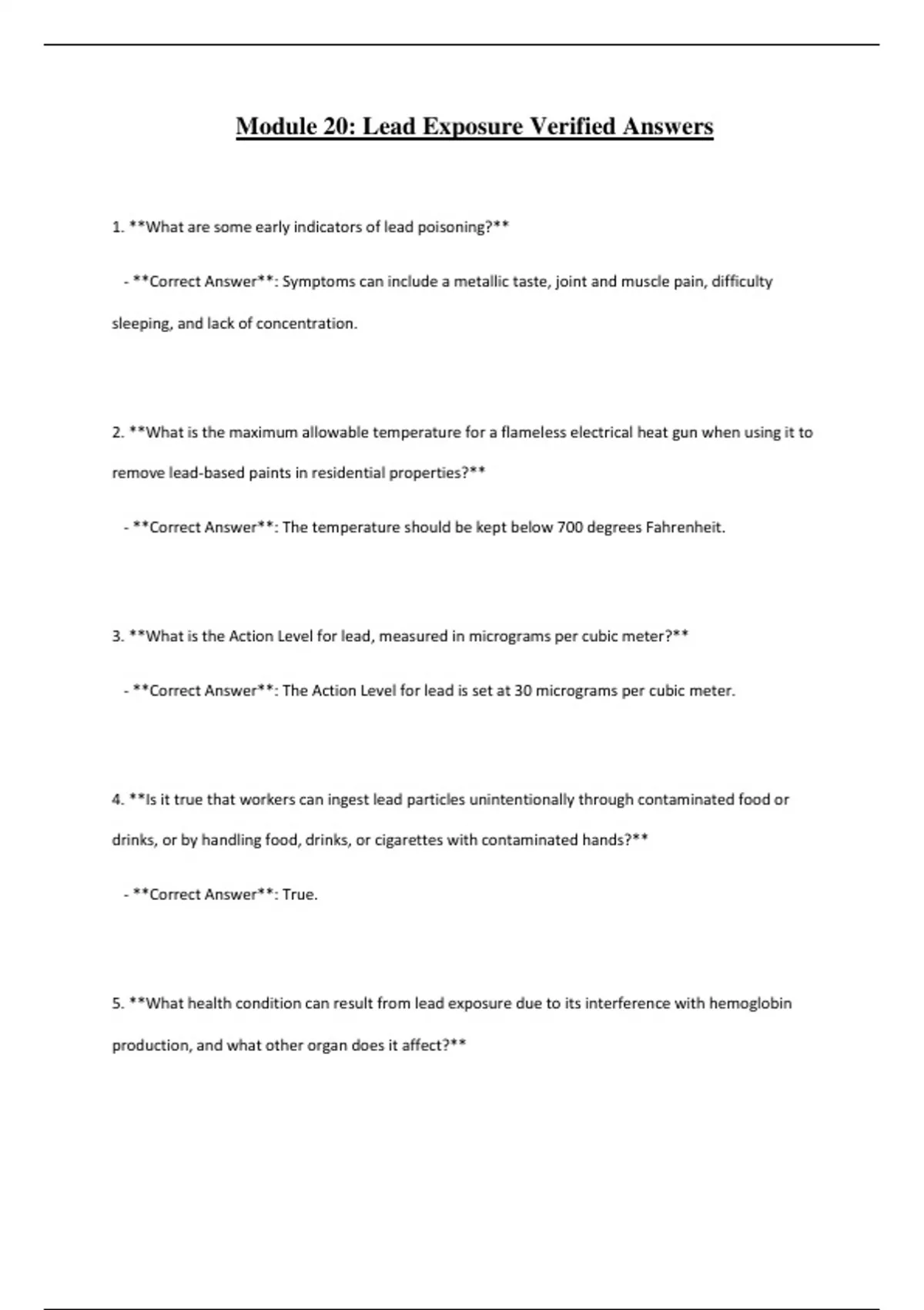 - **Correct Answer**: The Action Level for lead is set at 30 micrograms per cubic meter.