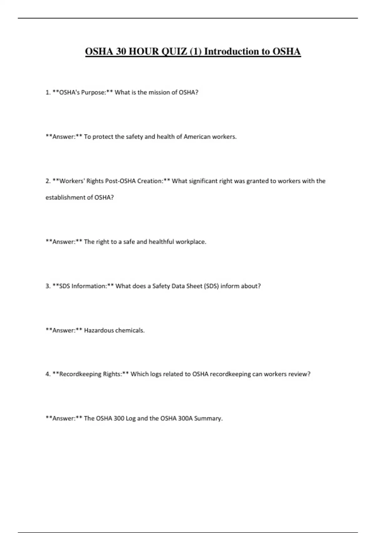 1. **OSHA's Purpose:** What is the mission of OSHA?