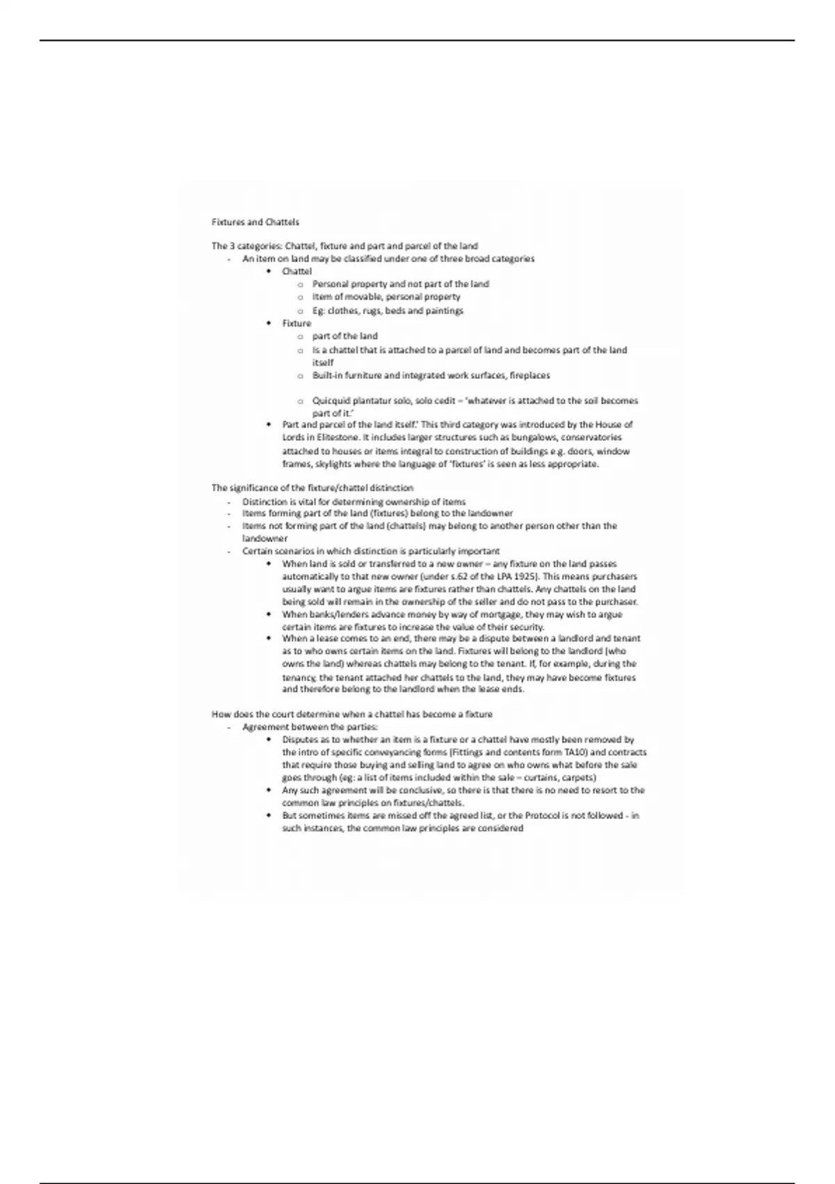 - Items not forming part of the land (chattels) may belong to another person other than the