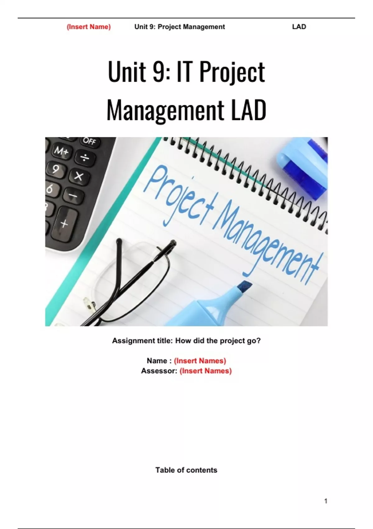 , (Insert Name) Unit 9: Project Management LAD