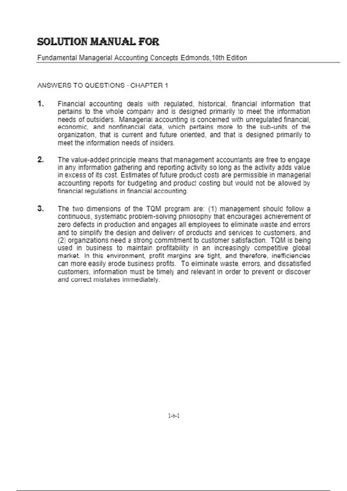 Solution Manual for Fundamental Managerial Accounting Concepts Edmonds,10th Edition
