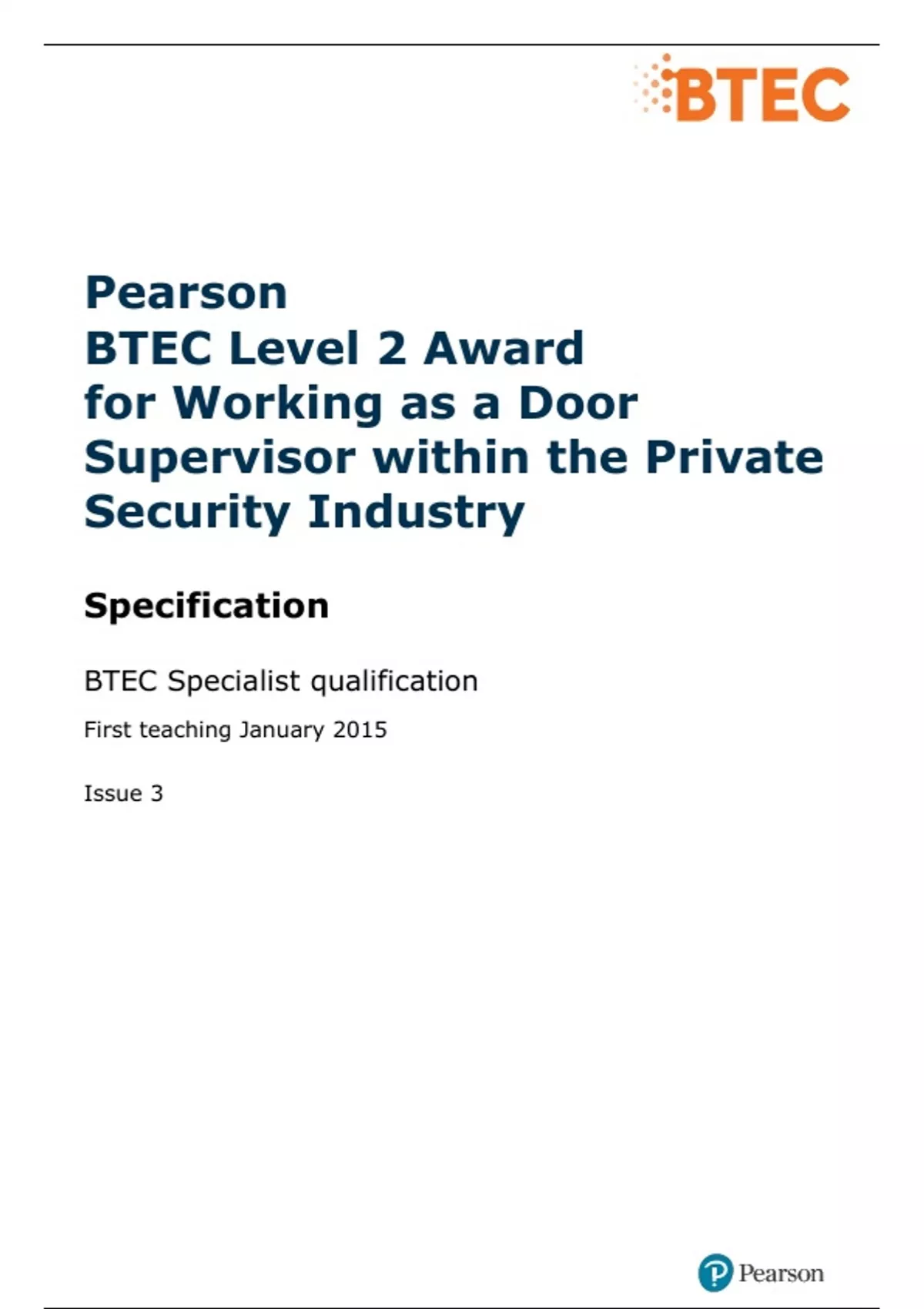 BTEC Level 2 Award for Working as a Door Supervisor within the Private Security Industry