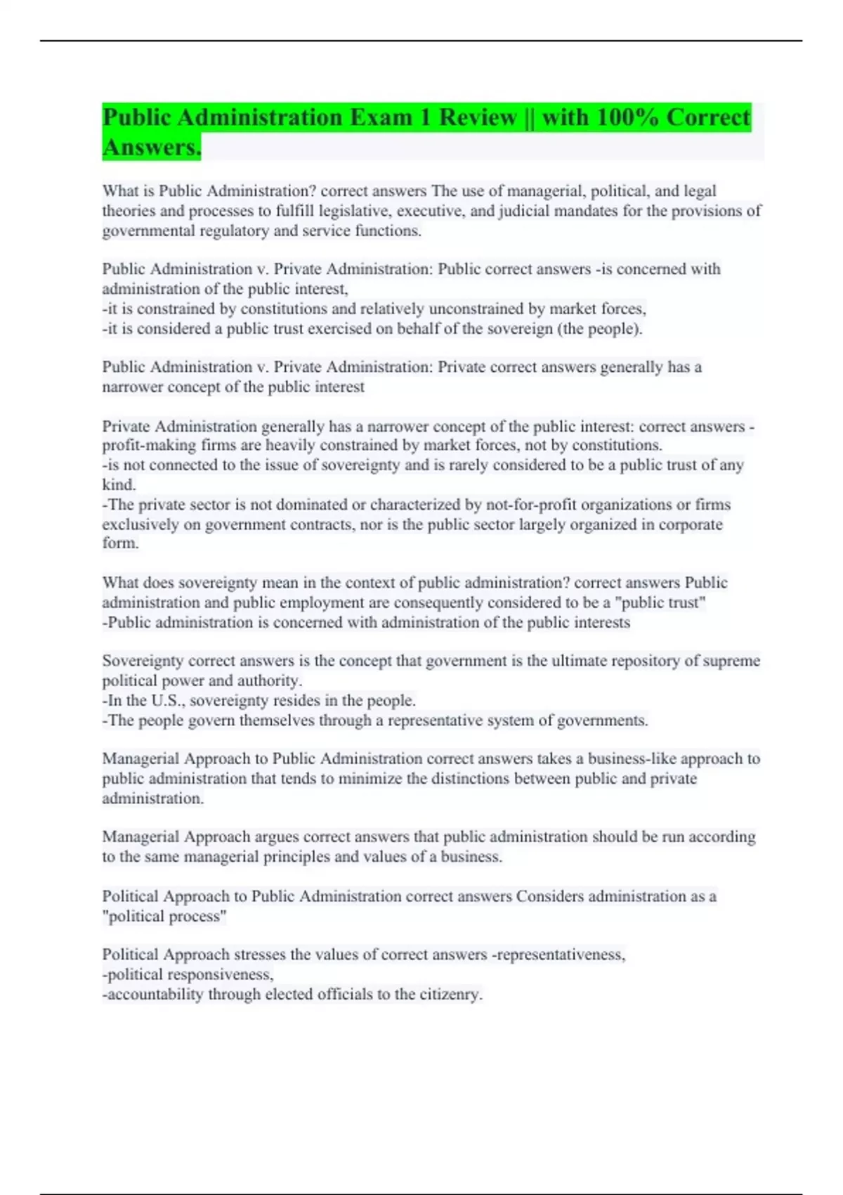 What does sovereignty mean in the context of public administration? correct answers Public administration and public employment are consequently considered to be a "public trust"