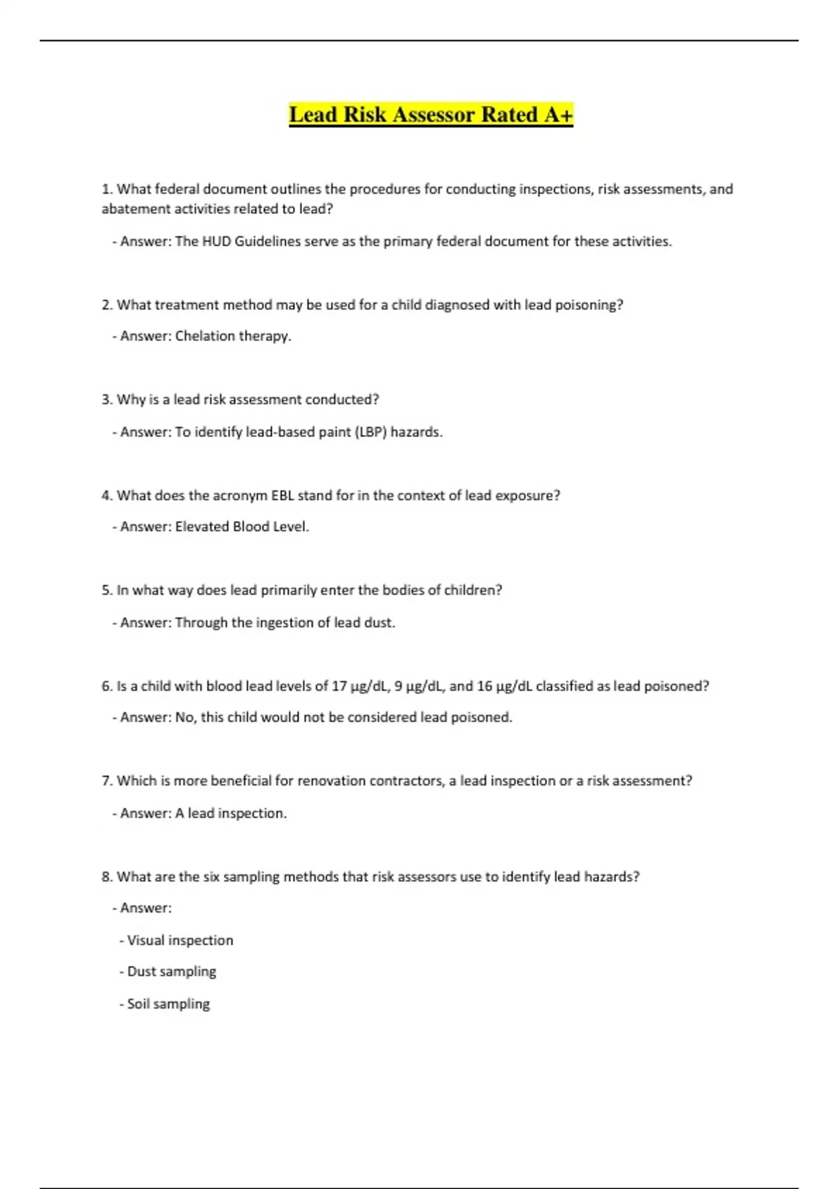 8. What are the six sampling methods that risk assessors use to identify lead hazards?