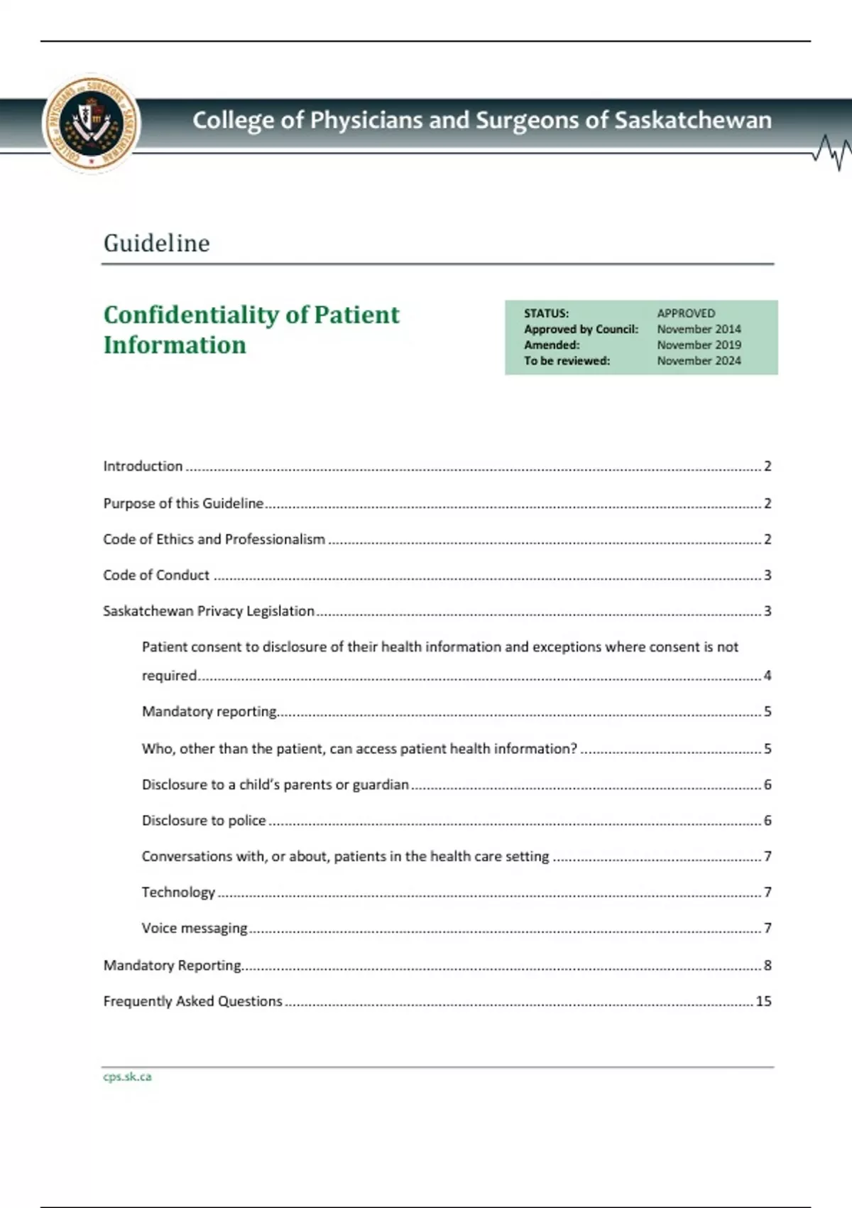 the College, Canadian Medical Protective Association, Saskatchewan Health Authority Privacy and