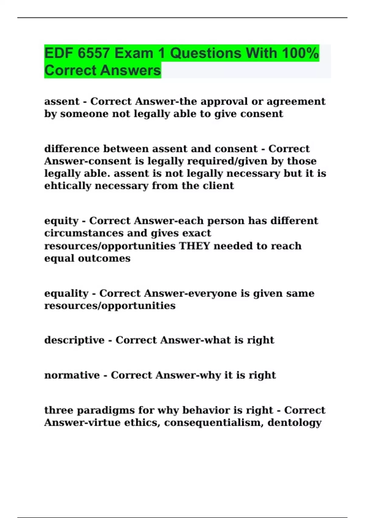 EDF 6557 Exam 1 Questions With 100% Correct Answers 2024