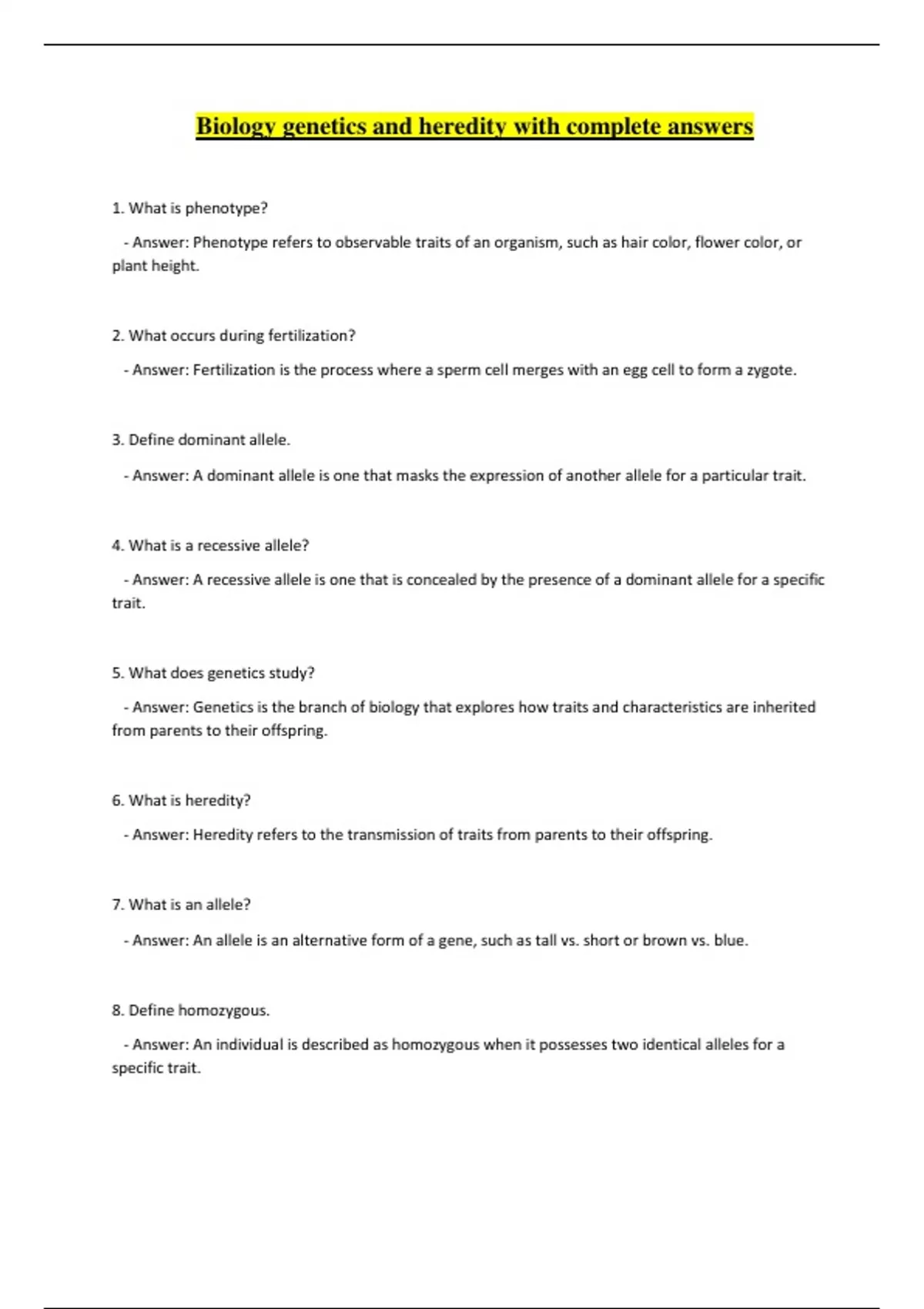 8. Define homozygous.