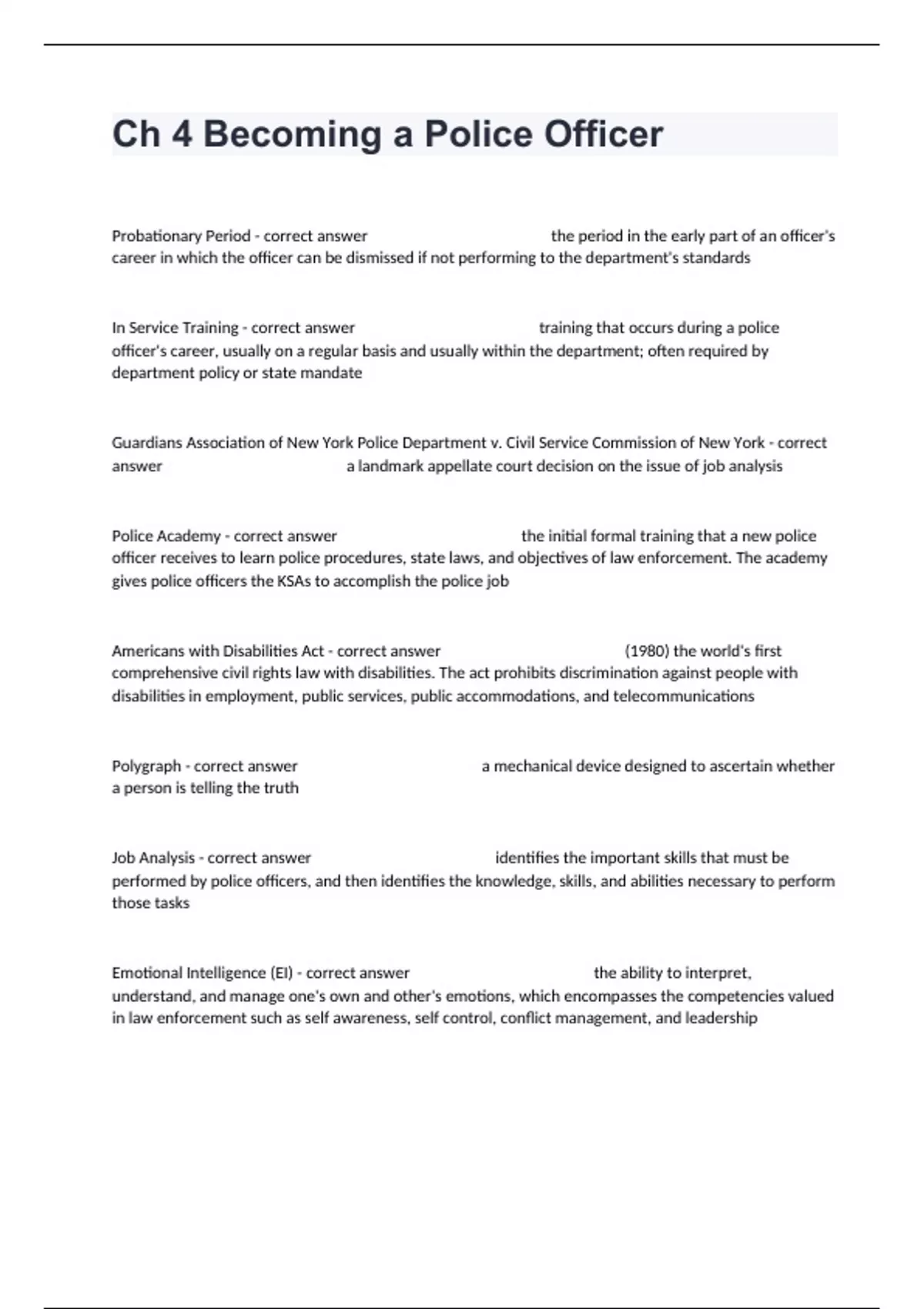 Police Academy - correct answer the initial formal training that a new police