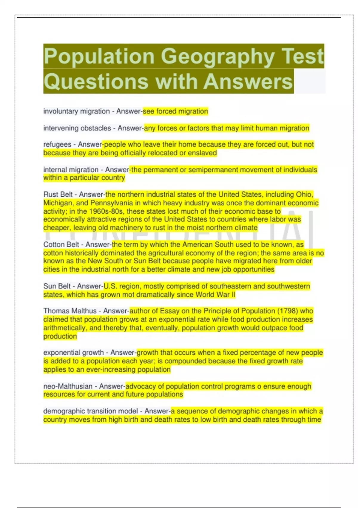 intervening obstacles - Answer-any forces or factors that may limit human migration