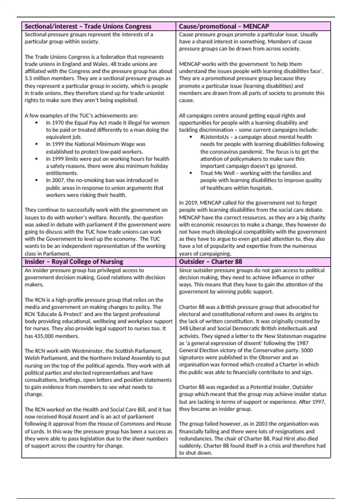 PAPER 1 A LEVEL POLITICS - ALL NOTES INCLUDED