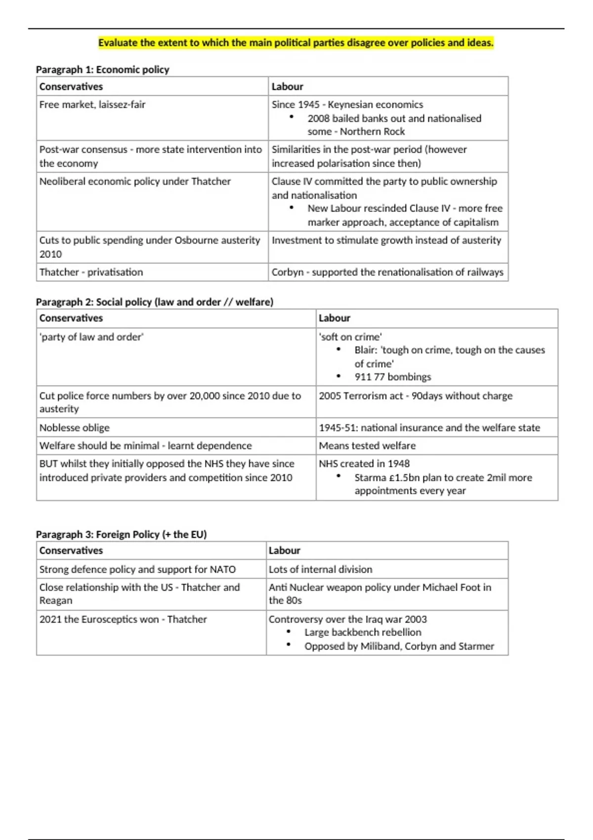 Evaluate the extent to which the main political parties disagree over policies and ideas.